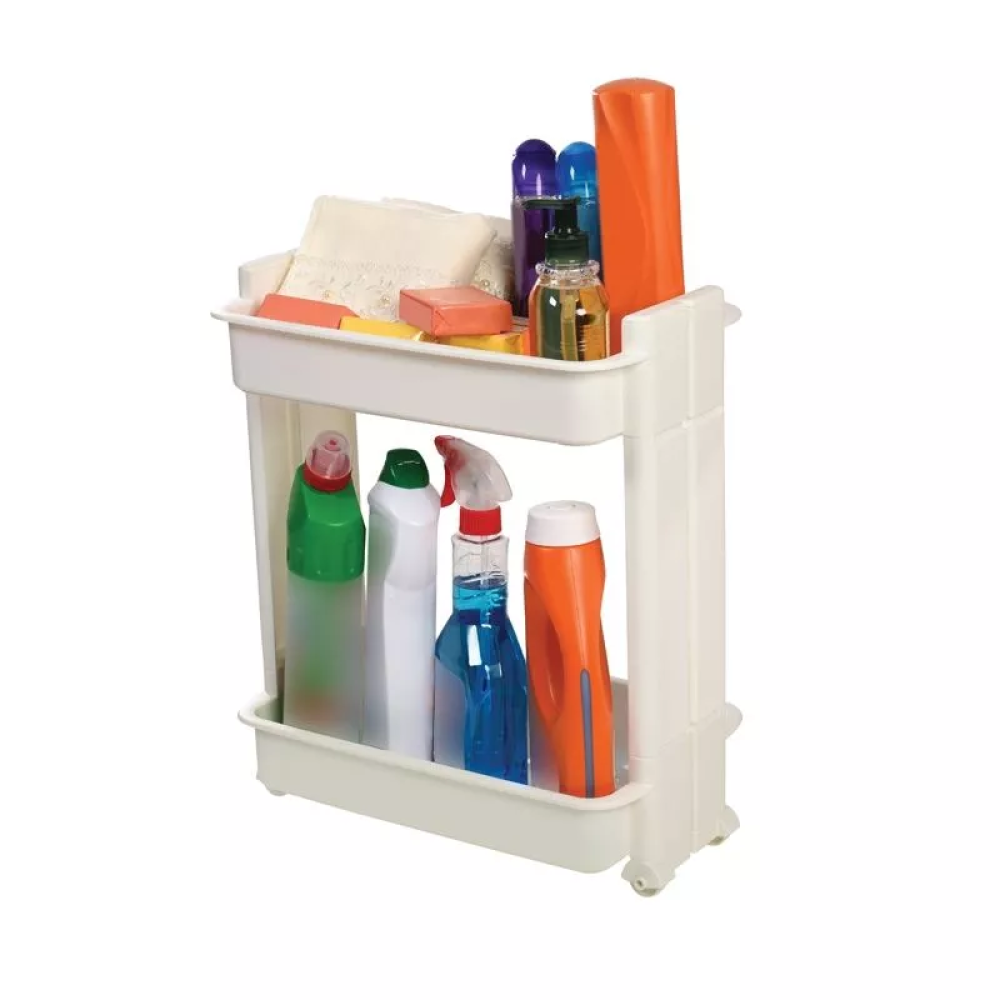 Two-tier organizer shelf on wheels, plastic, 38*23*18cm