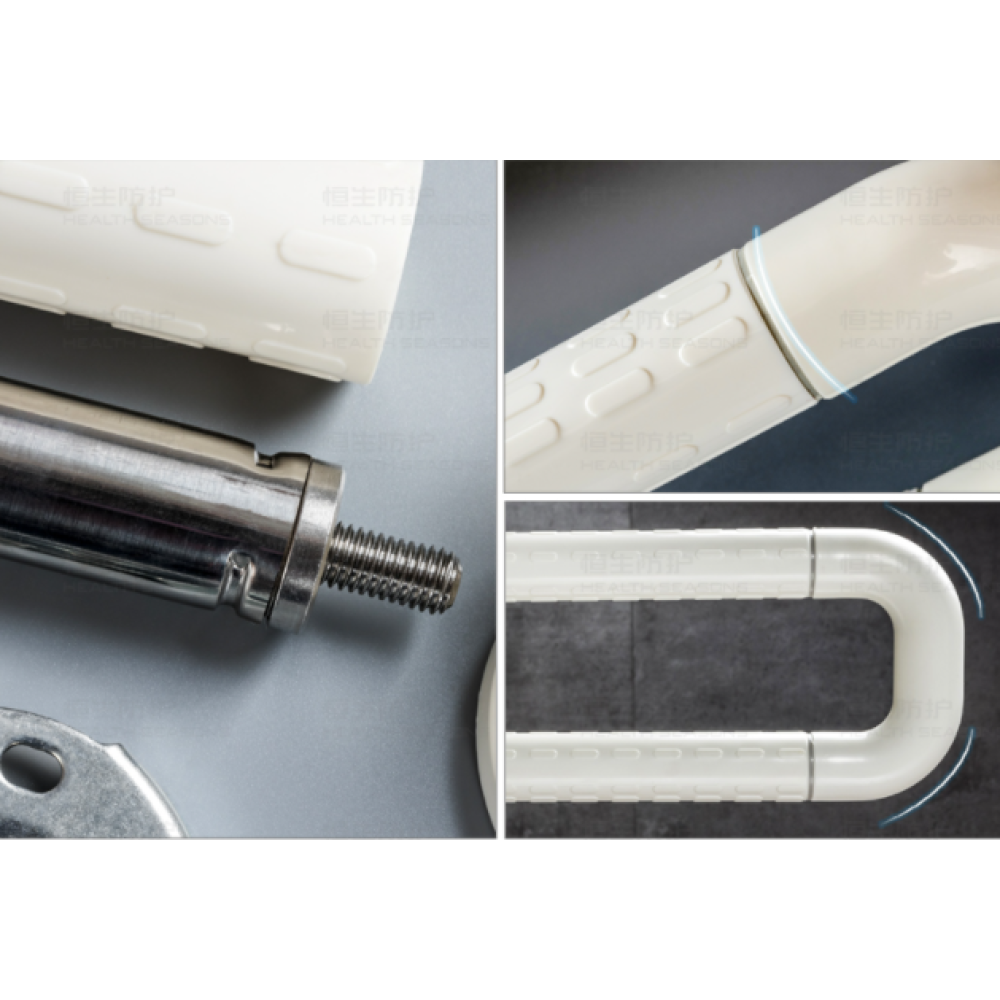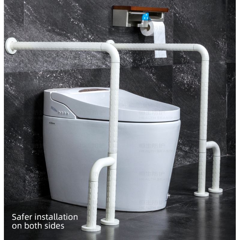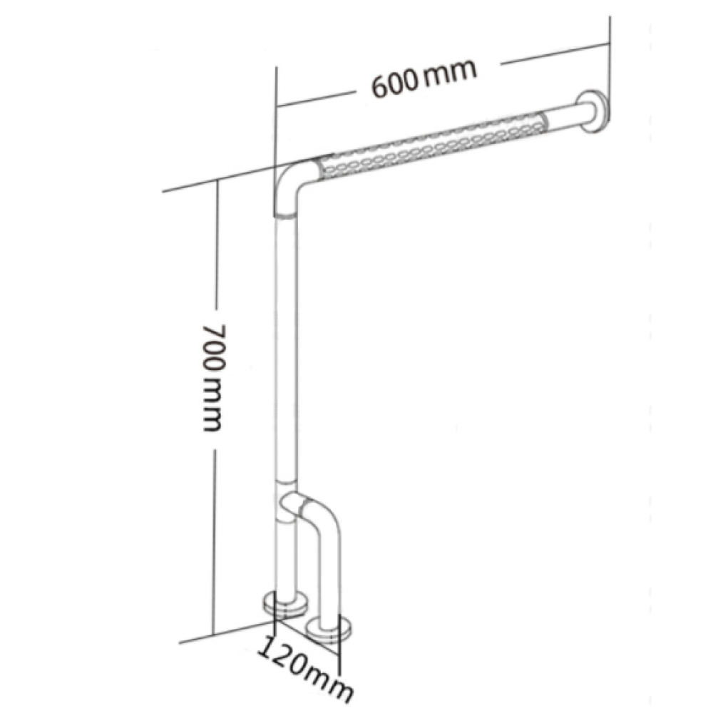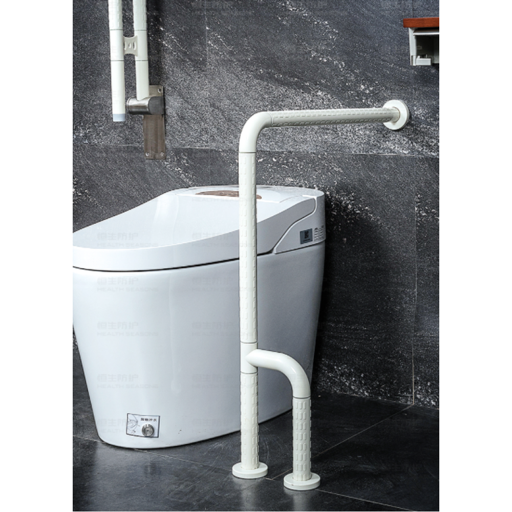 Поручень Г-подібний - встановлюється ліворуч або праворуч від раковини або унітазу. Поручень має поворотну ніжку на 360° (висотою 30 см). Він розроблений таким чином, щоб за нього було зручно триматися рукою. Поручень має три точки кріплення: стіна-підлога-підлога.