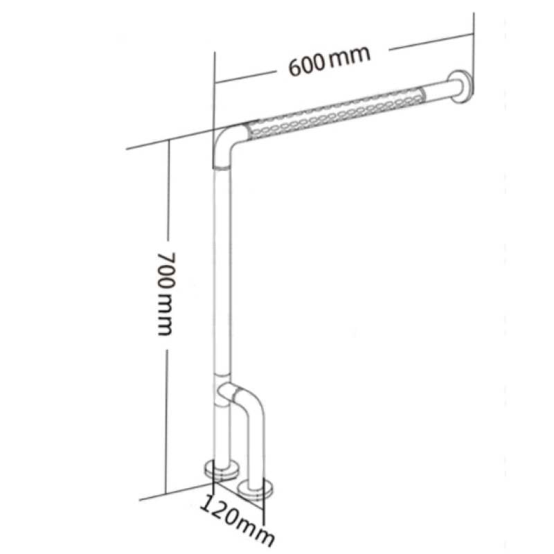 Поручень для туалету Г-подібний 700х600мм. колір білий, AISI 304