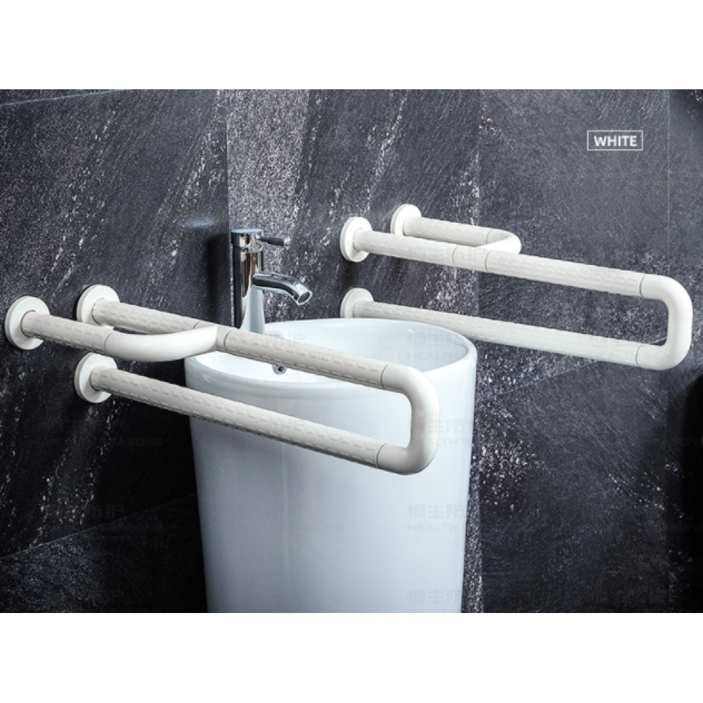 Поручень для умивальника стіновий 60см, висота 120х135мм, колір білий, AISI 304
