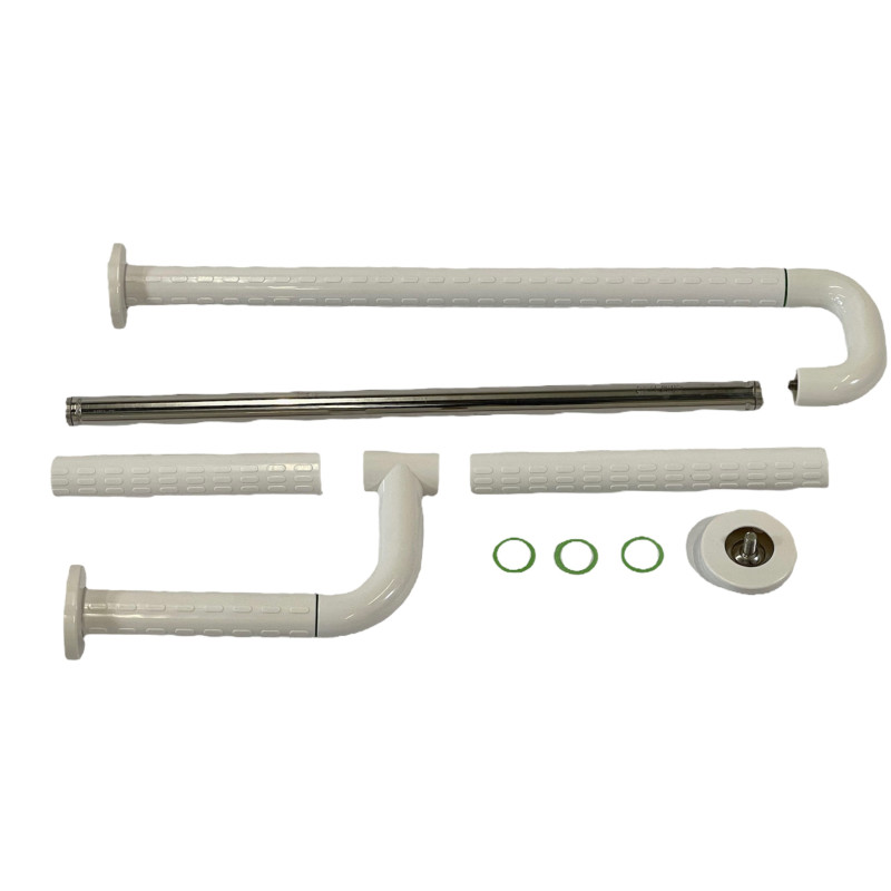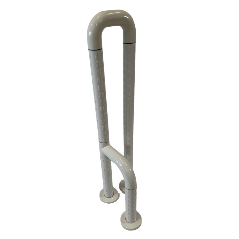 Поручень пристінний посилений з поворотною ніжкою - встановлюється біля раковини або унітазу, забезпечують додаткову точку опори. При такій конструкції опора всієї маси тіла йде на сам поручень, а його зручний розмір дозволить застосовувати його в різних за розміром приміщеннях.