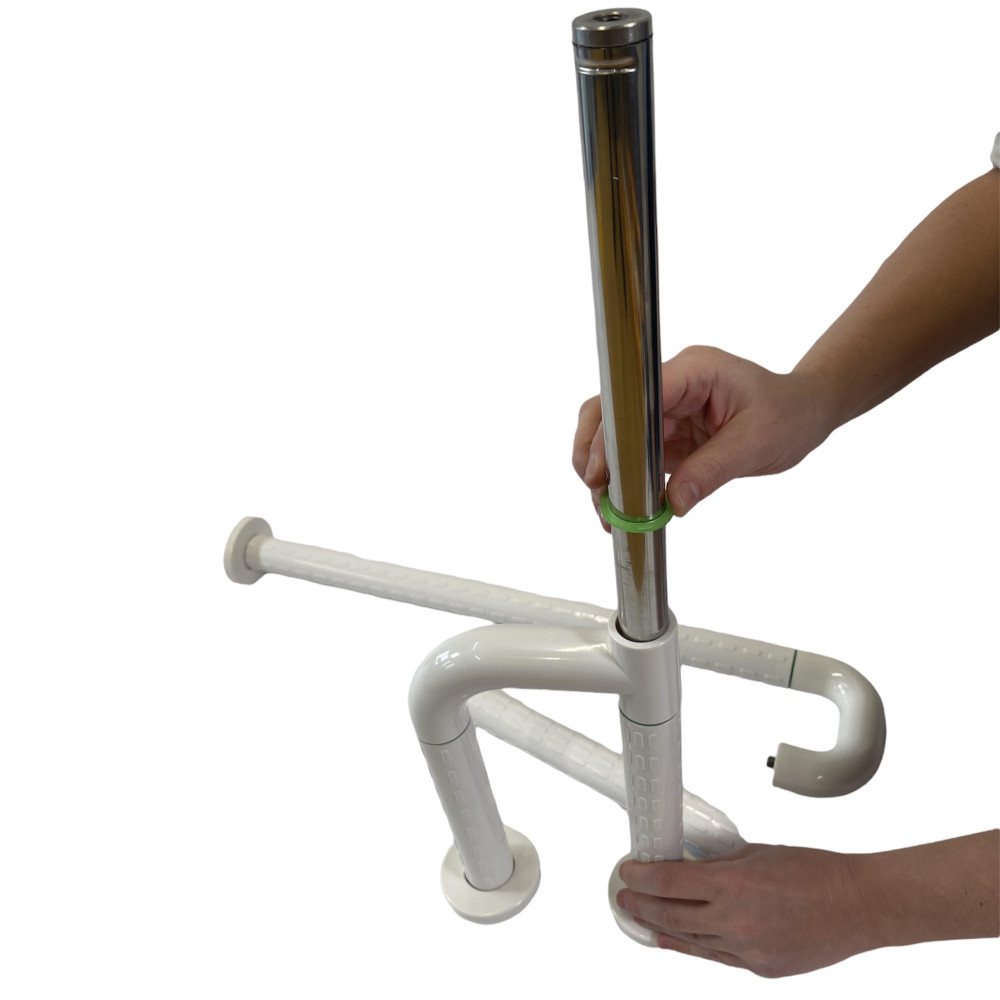 Завдяки поворотній ніжці-поручень можна встановлювати як справа, так і зліва від сантехніки.