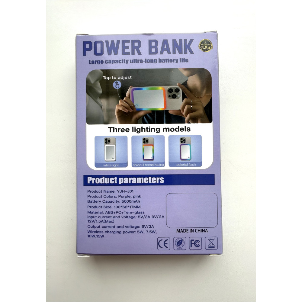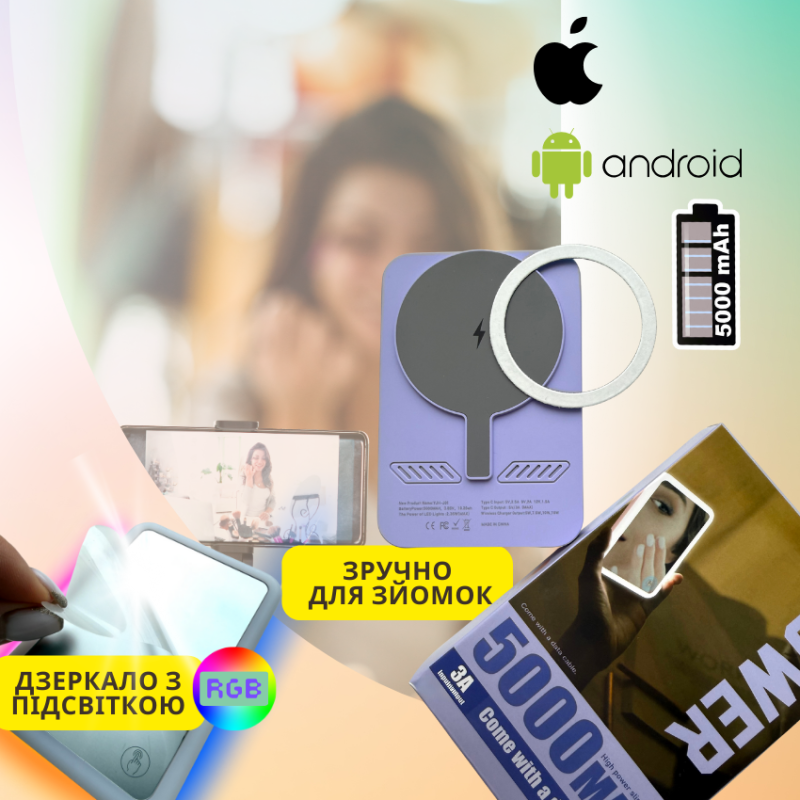 Больше чем просто павербанк. Это стильный аксессуар, сочетающий зарядку, зеркало и профессиональный свет для твоих фото, видео и стримов. Идеальный выбор для тех, кто всегда на связи и в кадре.