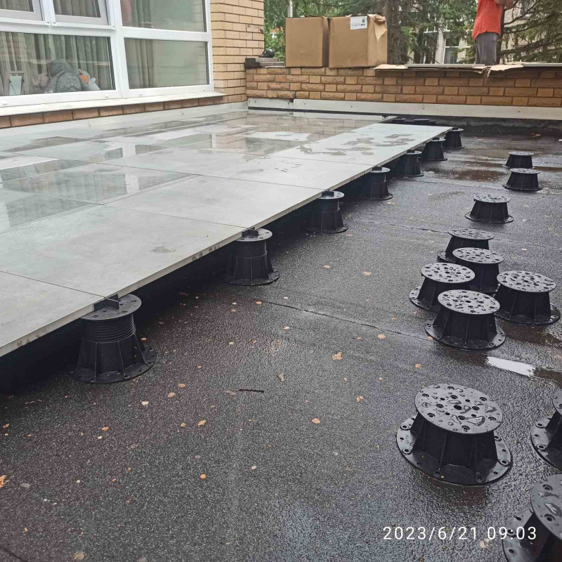 Після ремонту залишилось трохи бюджету — вирішили зробити маленьку тераску на криші будинку. Не хотіли морочитися з важкими рішеннями, тому вибрали варіант на регульованих опорах. Дуже зручно: нічого не треба кріпити, вирівнюєш кожну точку — і готово. Швидко, чисто і без зайвого пилу. Результатом дуже задоволена!