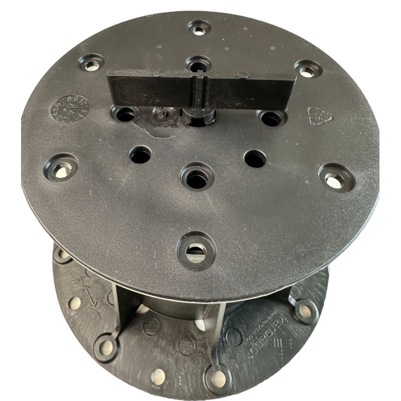 Фиксатор устанавливается на опору и служит направляющей плиткой. Поперечный табулятор устанавливают по периметру террасы.