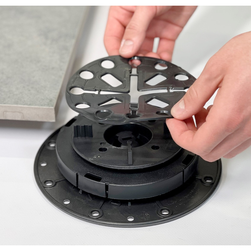 Антивибрационная подложка K-S2 – монтируется на вершину опоры или на автоматический корректор наклона. Подложка снижает вибрацию между опорой и финишным покрытием. Толщина подложки 2мм. Она имеет отверстия, полностью повторяющие отверстия на опоре.