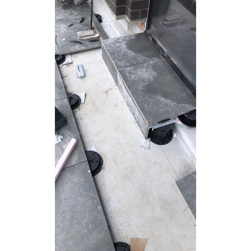 Фіксатор плитки нижній K-EВ виготовлений з нержавіючої сталі. Фіксатор використовують, для фіксаціїї плитки у вертикальному положенні. Це дозволяє приховати проміжок по периметру фальшпідлоги. Також його використовують для створення вертикальної стінки з плитки, там де відсутня стіна. Фіксатор встановлюється на нижню частину опори.