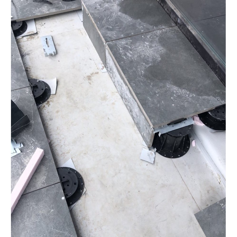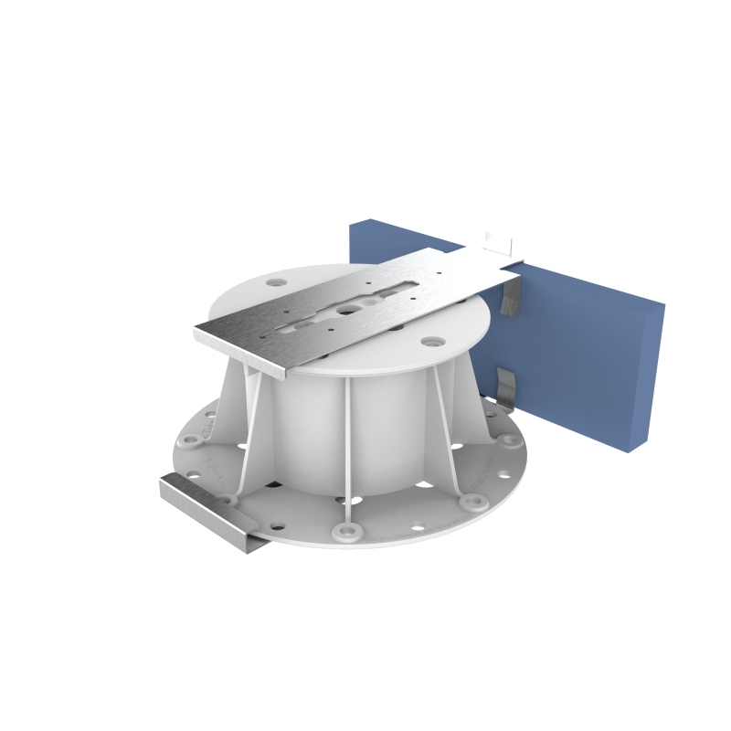 Фіксатор плитки нижній K-EВ виготовлений з нержавіючої сталі. Фіксатор використовують, для фіксаціїї плитки у вертикальному положенні. Це дозволяє приховати проміжок по периметру фальшпідлоги. Також його використовують для створення вертикальної стінки з плитки, там де відсутня стіна. Фіксатор встановлюється на нижню частину опори.