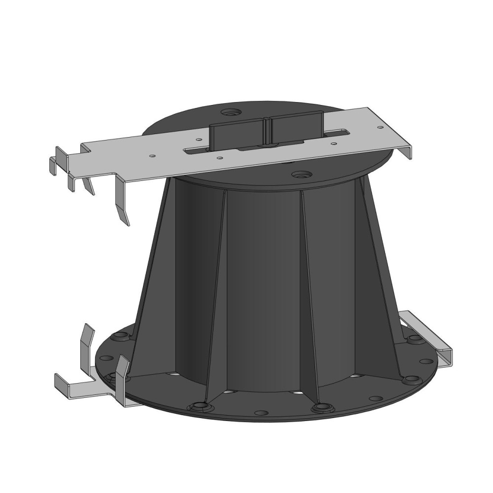 Фіксатор плитки верхній K-ET виготовлений з нержавіючої сталі. Фіксатор використовують, для фіксаціїї плитки у вертикальному положенні. Це дозволяє приховати проміжок по периметру фальшпідлоги. Також його використовують для створення вертикальної стінки з плитки, там де відсутня стіна. Фіксатор встановлюється на верхню частину опори.