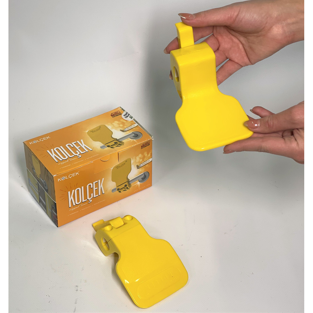 Изделие легко крепится на любую дверную ручку без каких-либо приспособлений. Позволяет открывать дверь запястьем или предплечьем без взаимодействия с поверхностью.