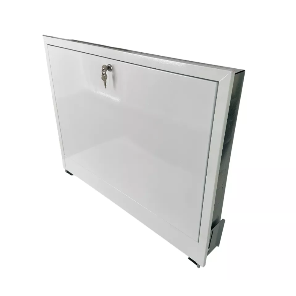 Material - high-quality galvanized steel with anti-corrosion coating, and painted with white enamel. The cabinet is locked with a key.
