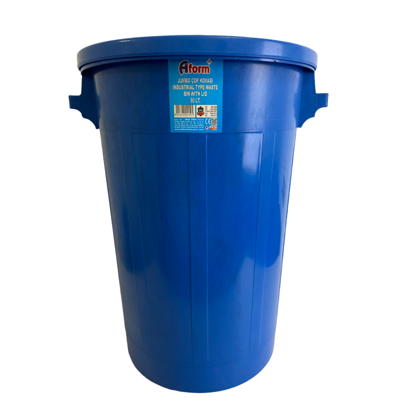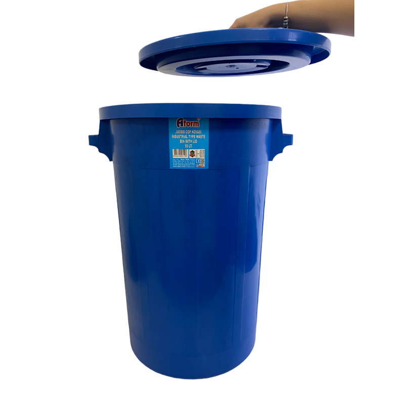 Сміттєвий бак промислового типу з круглою кришкою на 90л, пластик. колір синій
