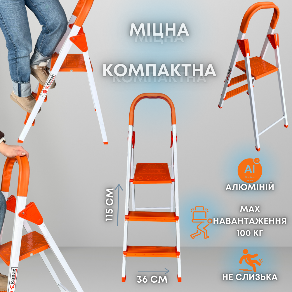 Стремянка Kanat Rita на 3 ступени, стремянка на 3 ступени, стремянка на три ступени