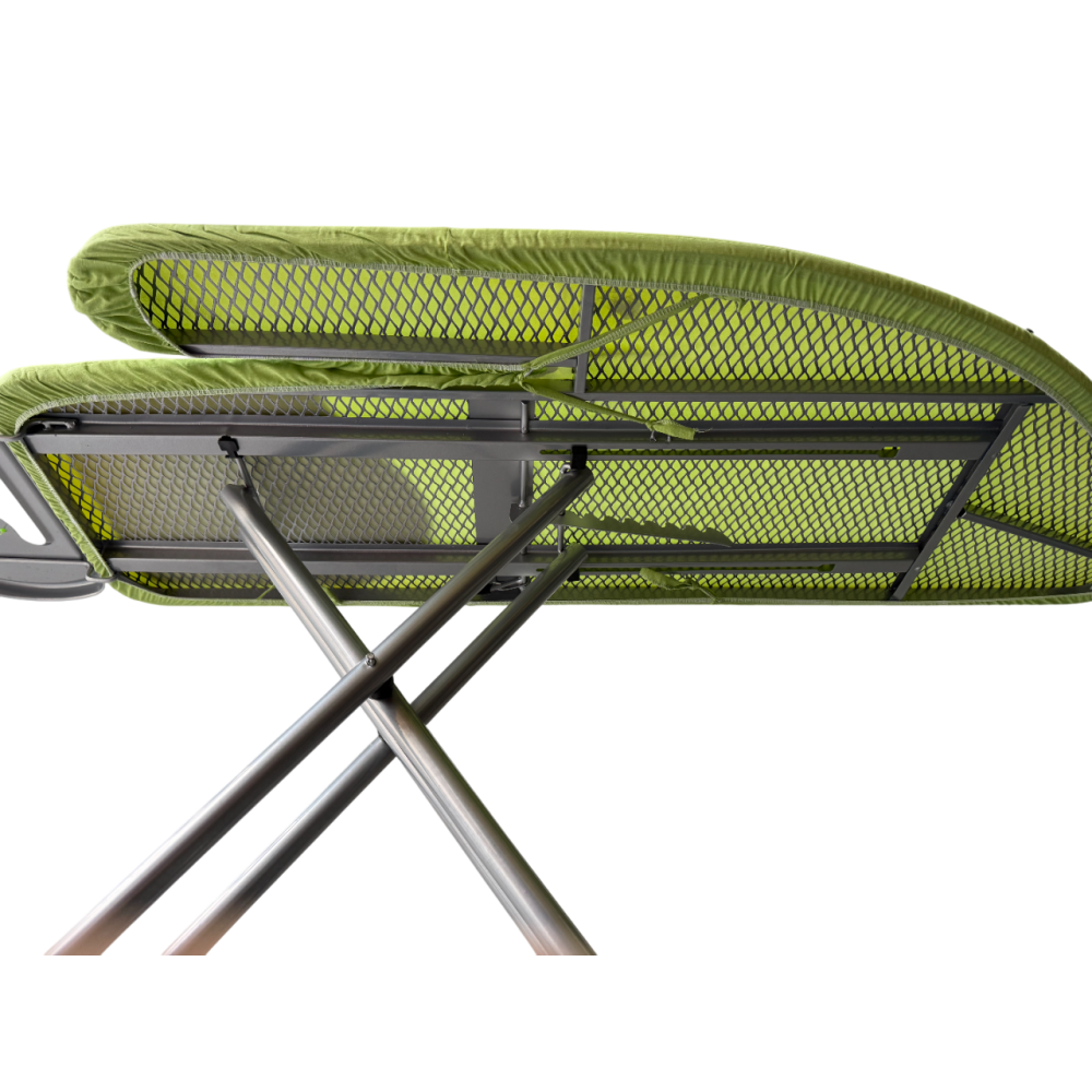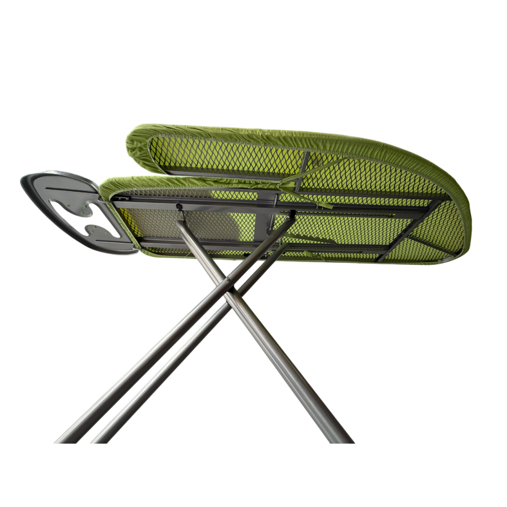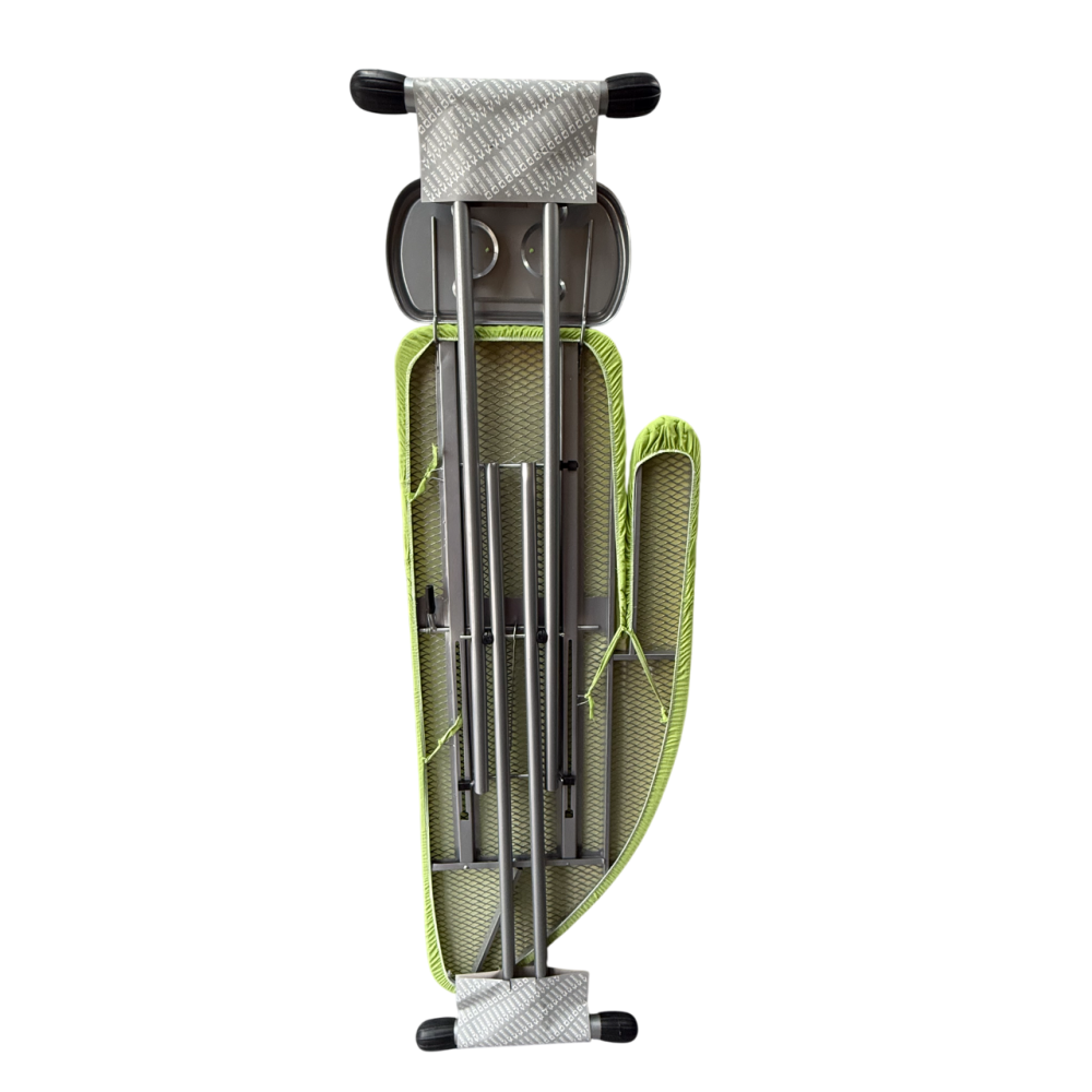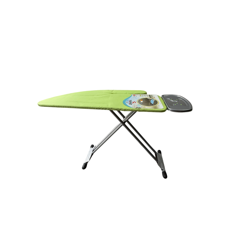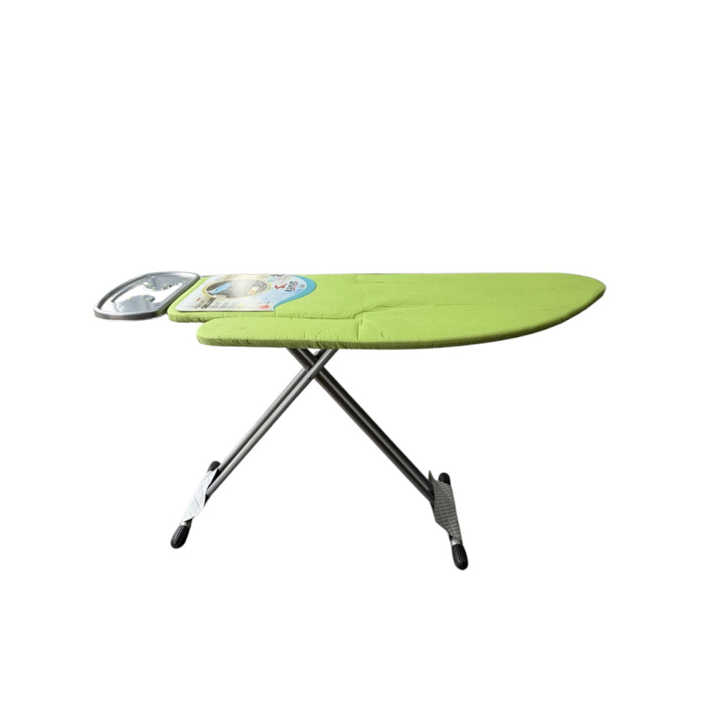 Особое внимание следует обратить на легкость и компактность конструкции – доска легко складывается и удобно хранится в узких пространствах, таких как шкаф или за дверью. В комплекте доска имеет подставку под утюг.