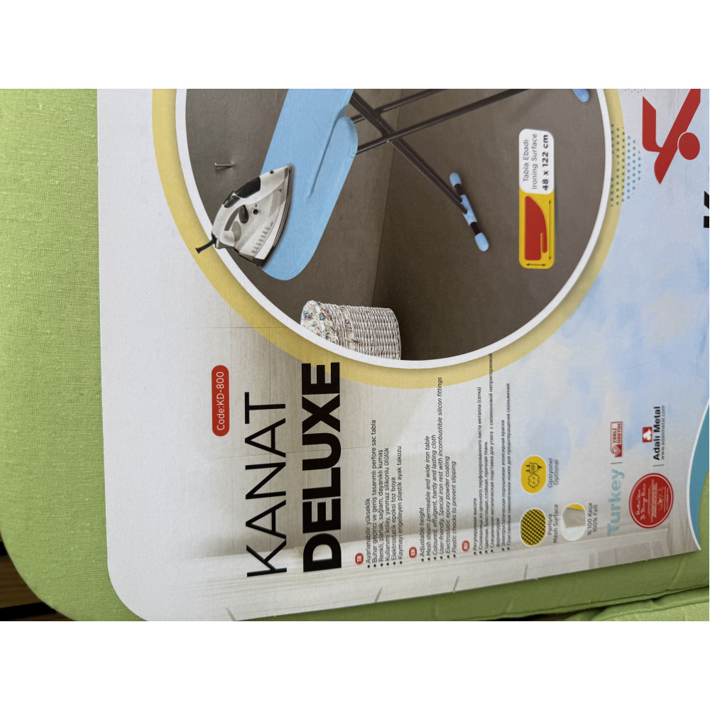 Гладильная доска Kanat DMAX KD-800 отличается большим размером, современным и эргономичным дизайном, а также выступом для удобной глажки рукавов. Размер поверхности 48х122см.