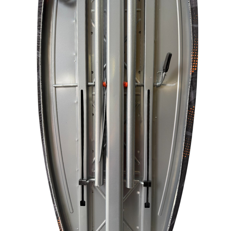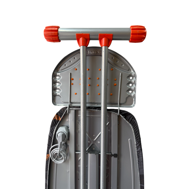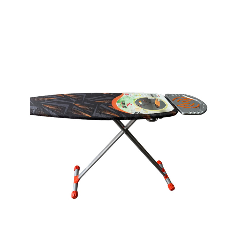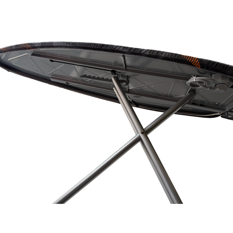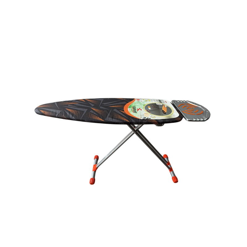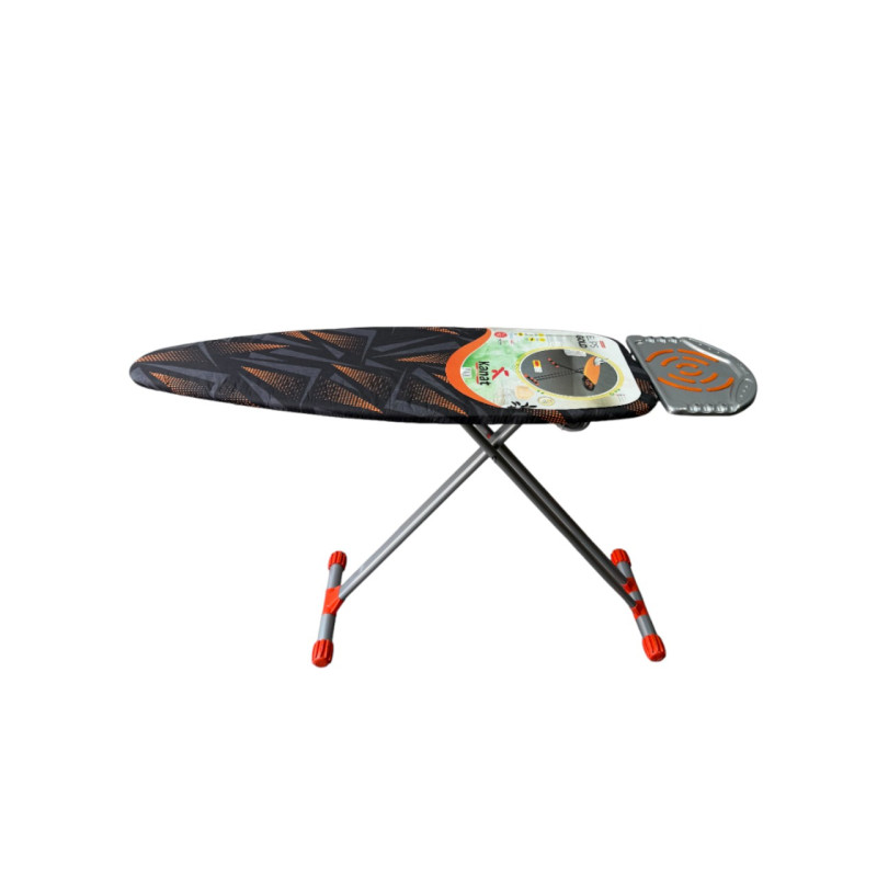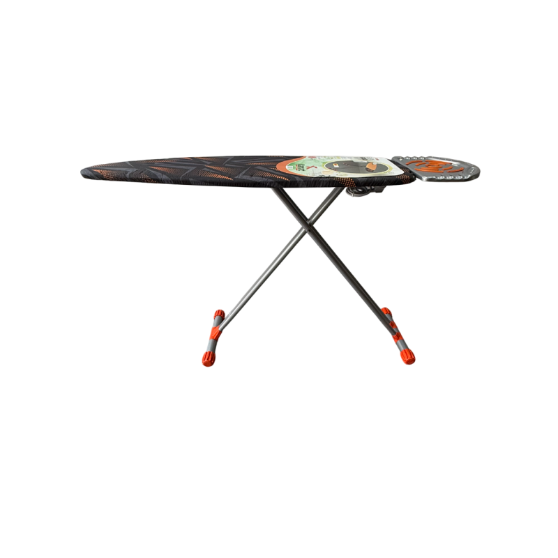 Металлические элементы покрыты электростатической термостойкой порошковой краской, защищающей от перегрева и коррозии, продлевая срок службы изделия. Для безопасного использования доска оснащена огнеупорной подставкой для утюга.