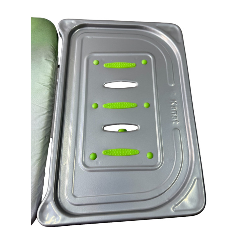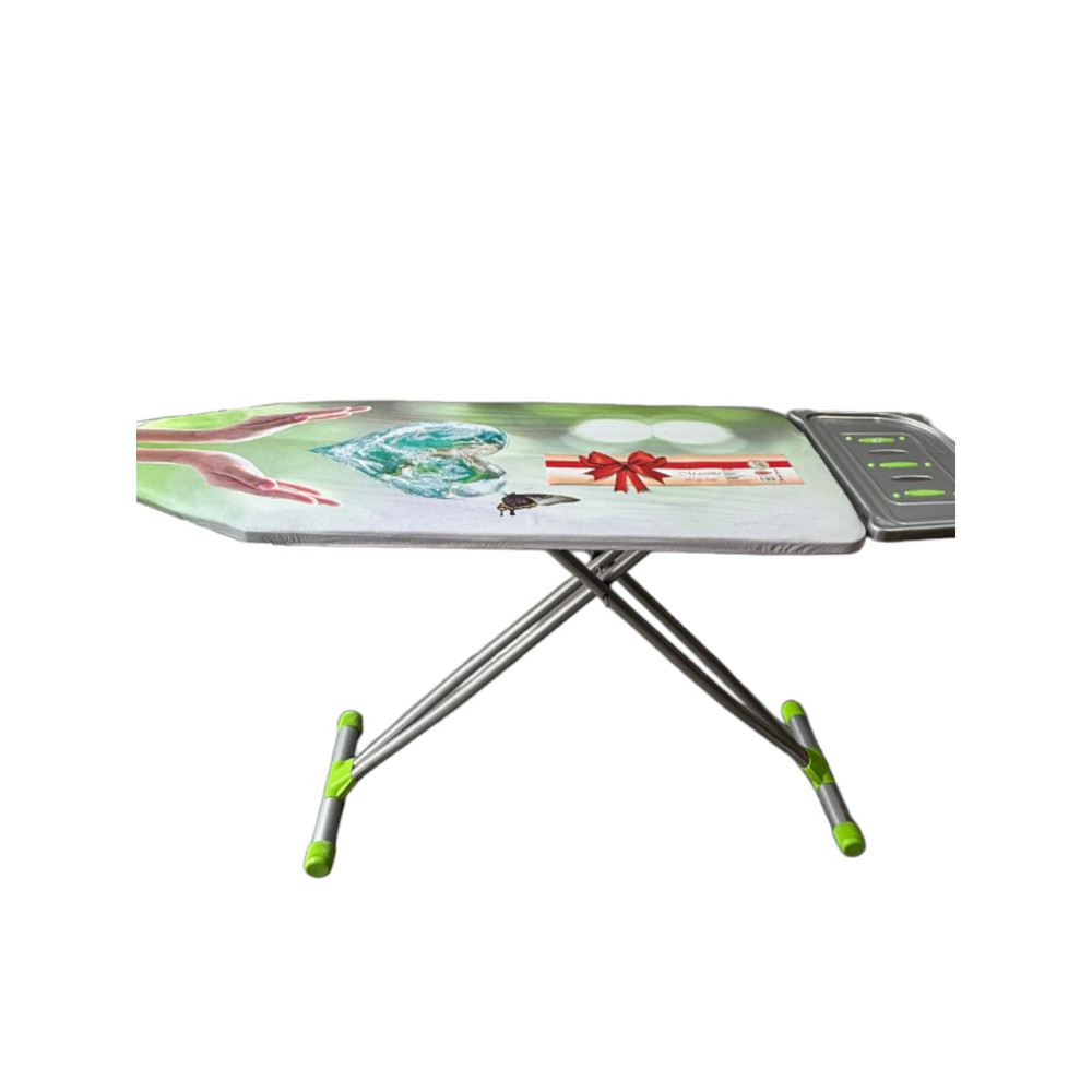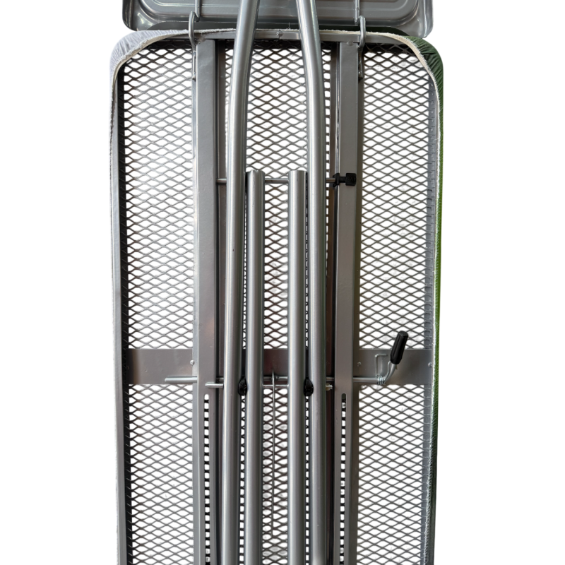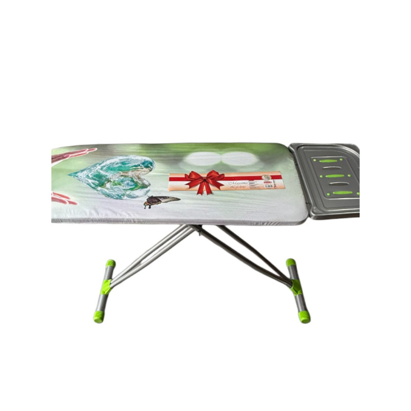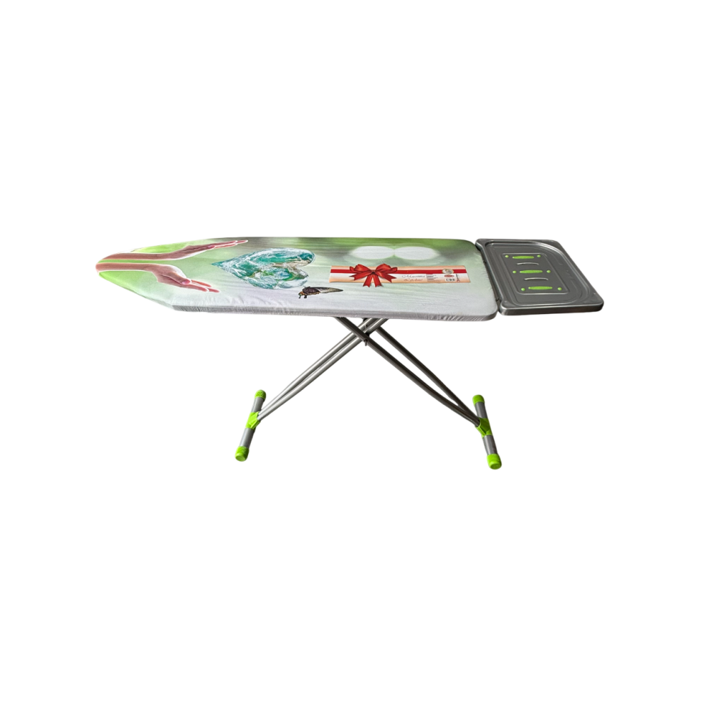 Доска легко складывается и удобно хранится в узких пространствах, таких как шкаф или за дверью. В комплекте доска имеет подставку под утюг.