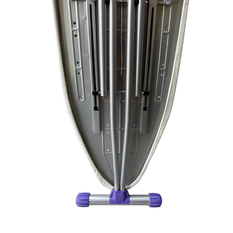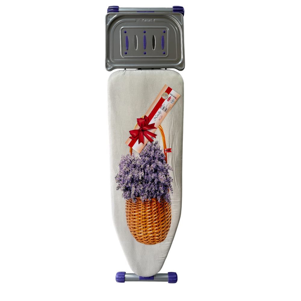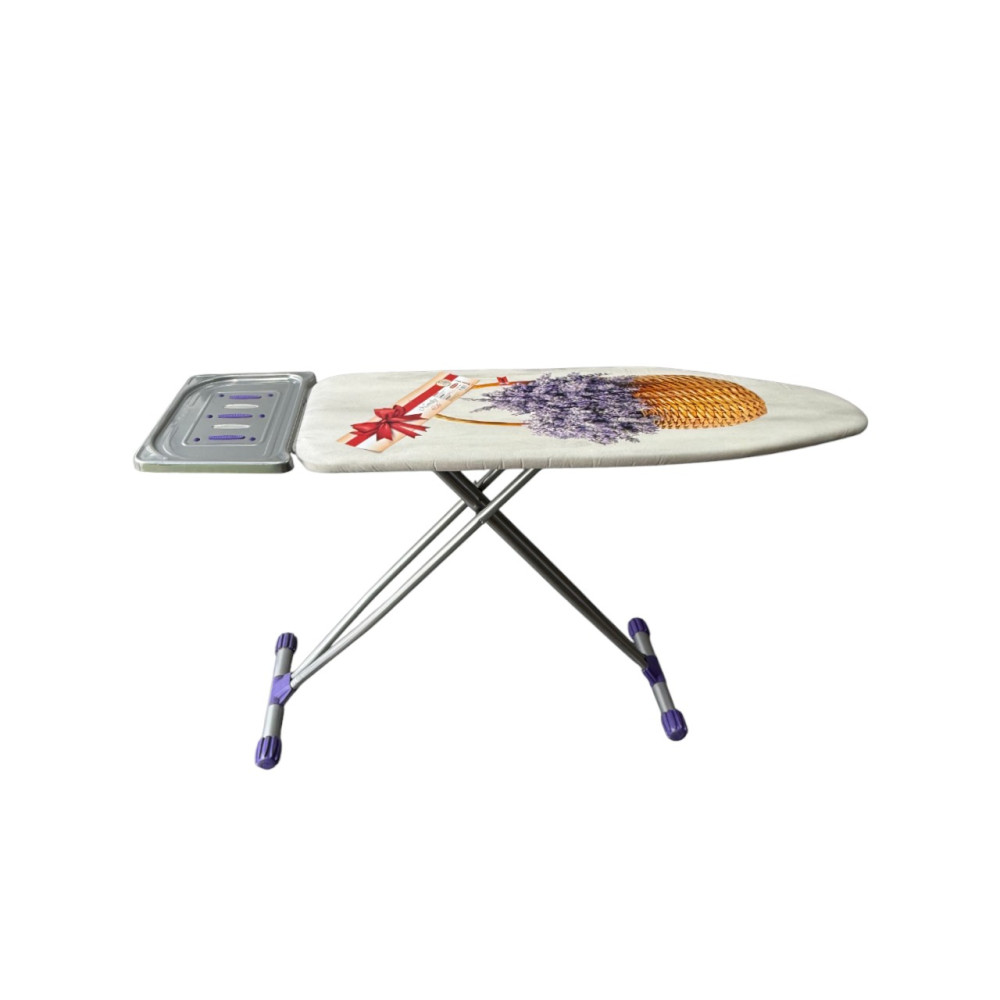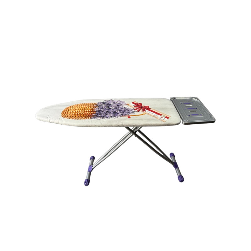 Металлические элементы покрыты электростатической термостойкой порошковой краской, защищающей от перегрева и коррозии, продлевая срок службы изделия. Для безопасного использования доска оснащена огнеупорной подставкой для утюга.