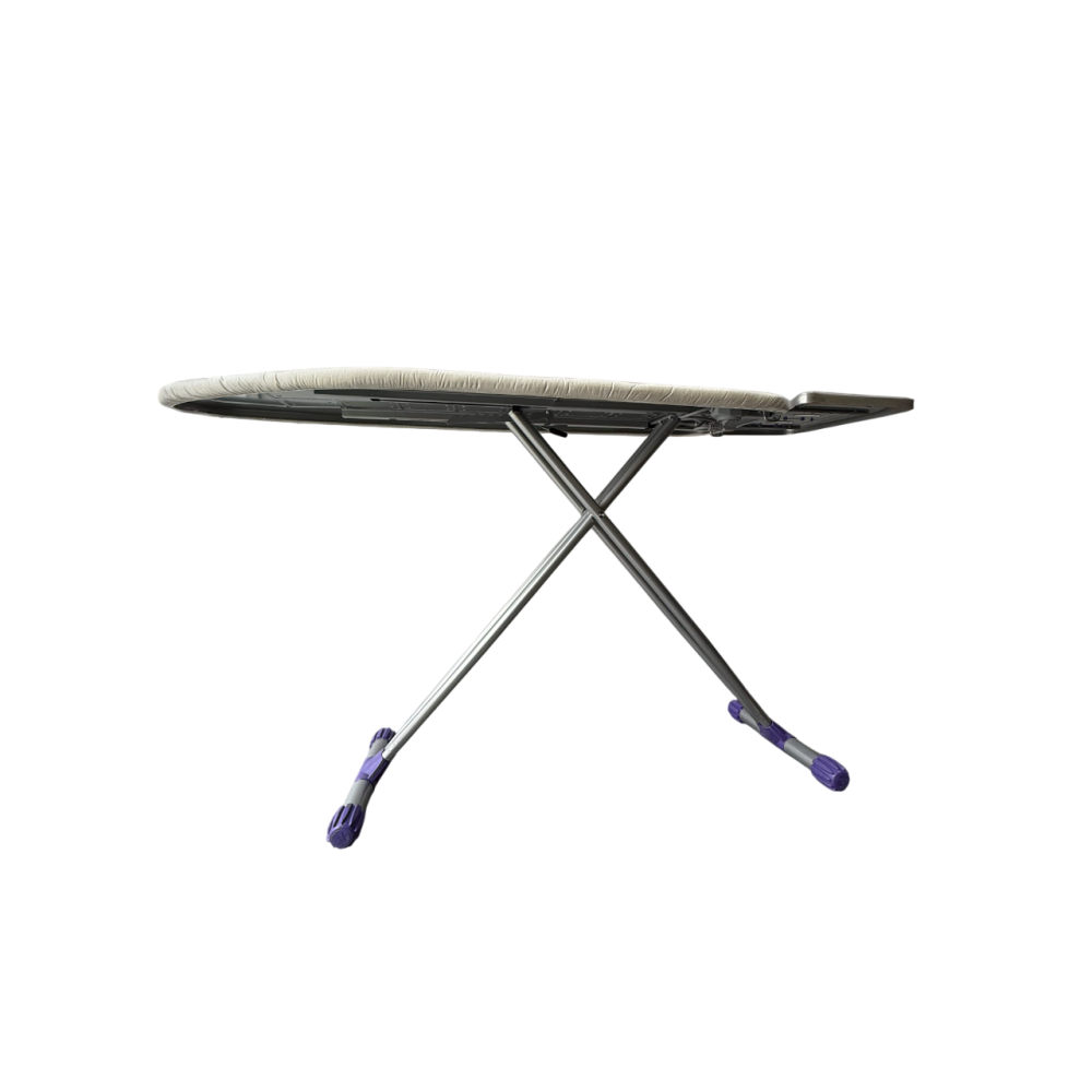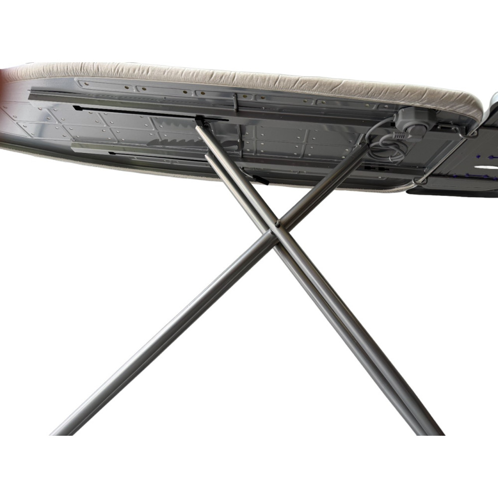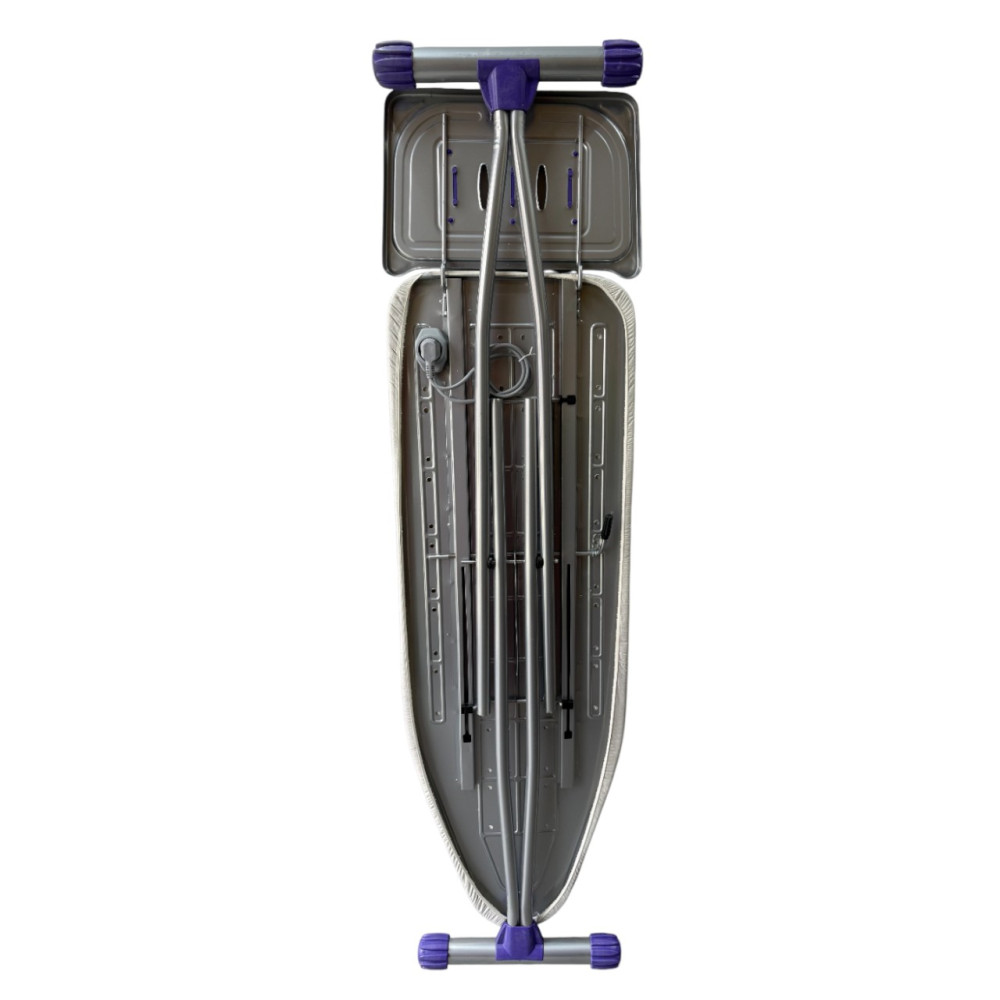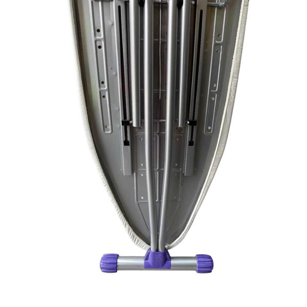 Металлические элементы покрыты электростатической термостойкой порошковой краской, защищающей от перегрева и коррозии, продлевая срок службы изделия. Для безопасного использования доска оснащена огнеупорной подставкой для утюга.