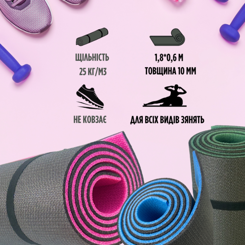 Каремат двухслойный розовый-черный 180х60см, толщина 10мм.
