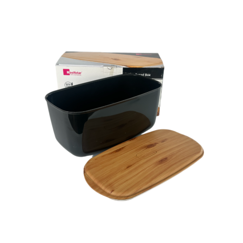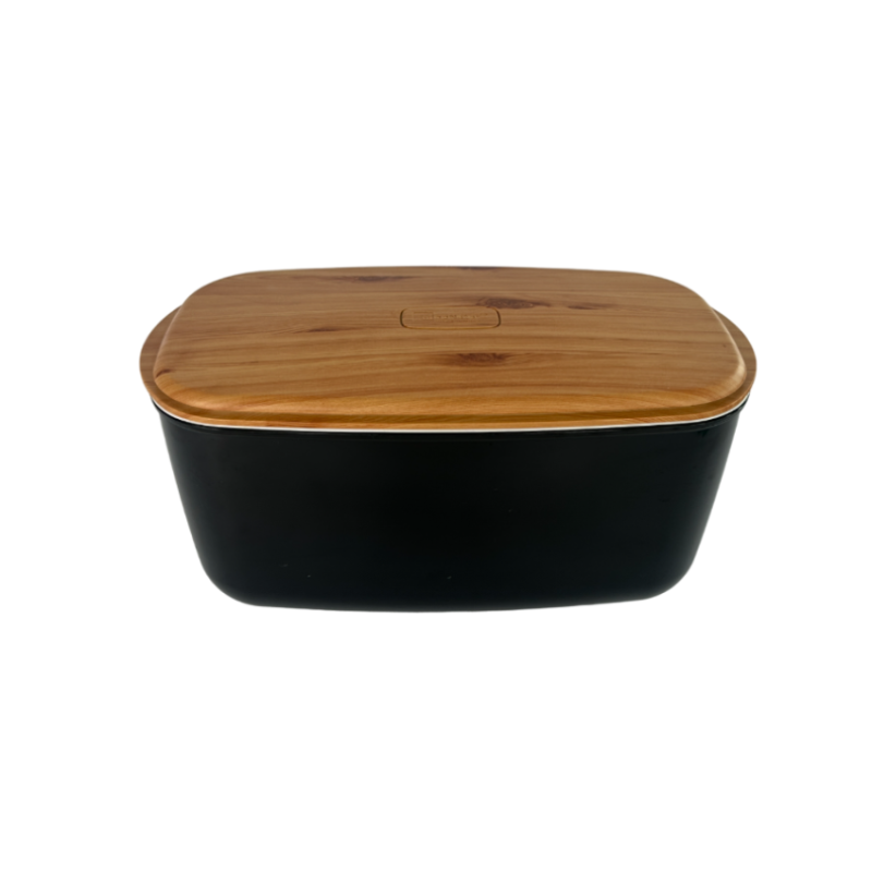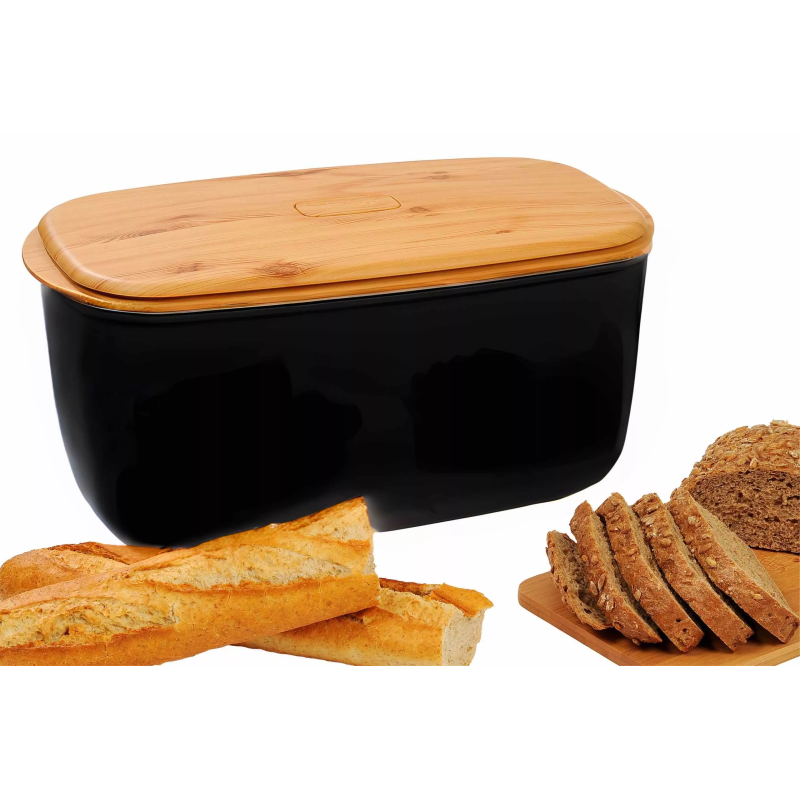 Хлебница черная с бамбуковой крышкой 23х42х21см