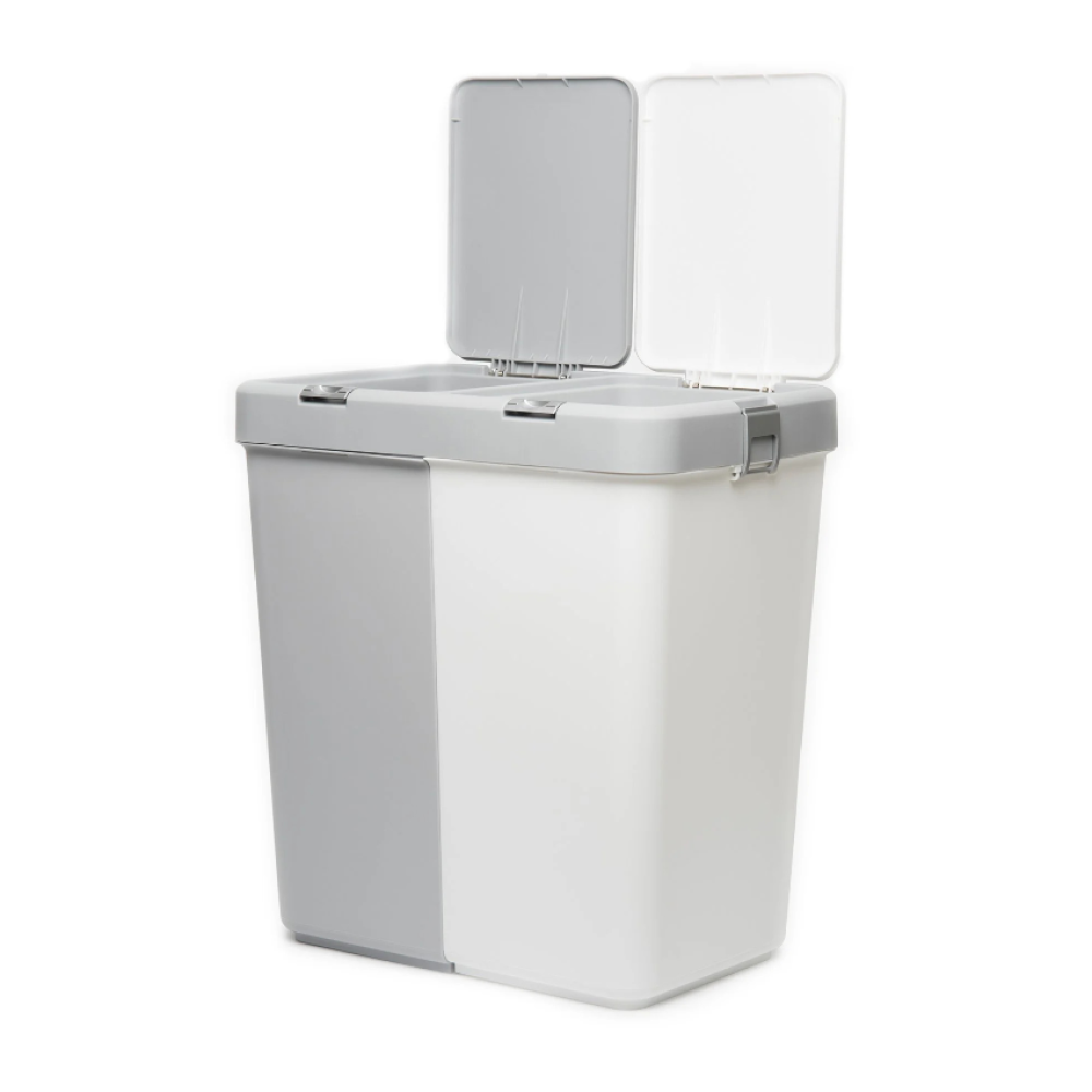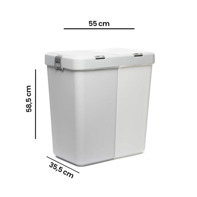 - Два отделения по 40 литров каждое : Корзина разделена на два отделения, что позволяет удобно сортировать белье. Вы можете разделить белье на черное и белое или на цветное и черно-белое.