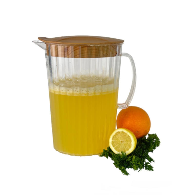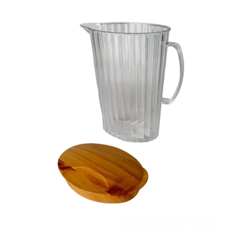 Кувшин изготовленный из прозрачного прочного пластика отлично подойдет для: лимонада, воды, или даже коктейлей. Эта модель имеет акцентную бамбуковую крышку.