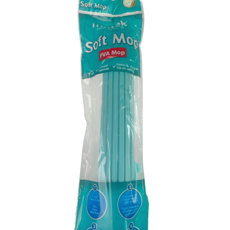 Моп изготовлен из инновационного материала PVA, который обладает уникальным свойством: после контакта с водой он становится мягким, а после высыхания – твердым.