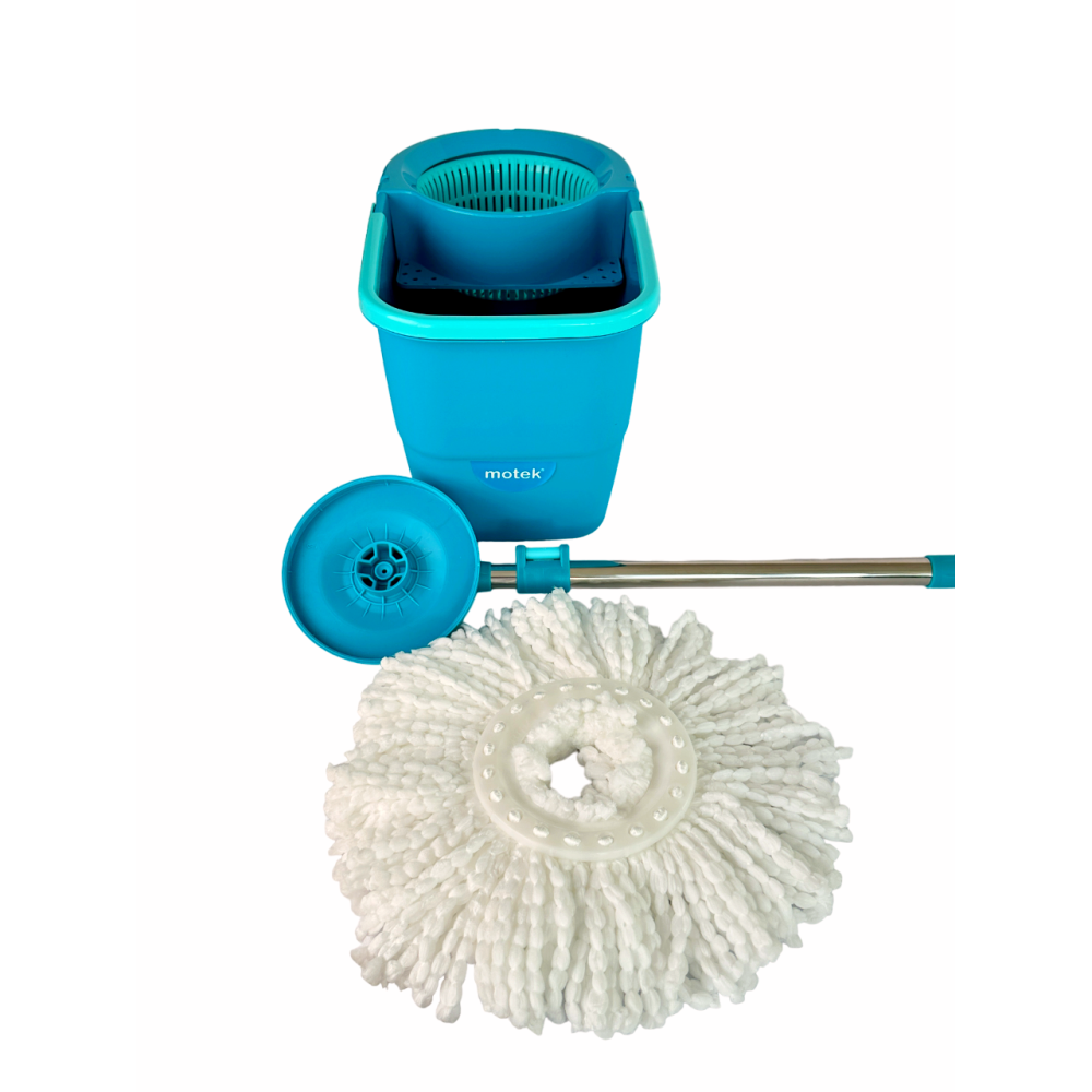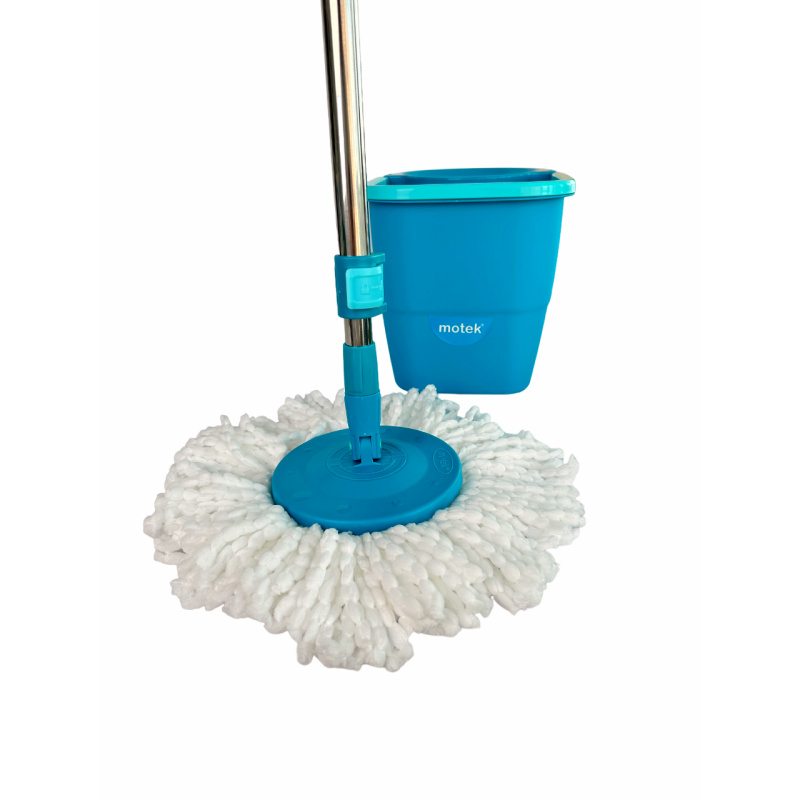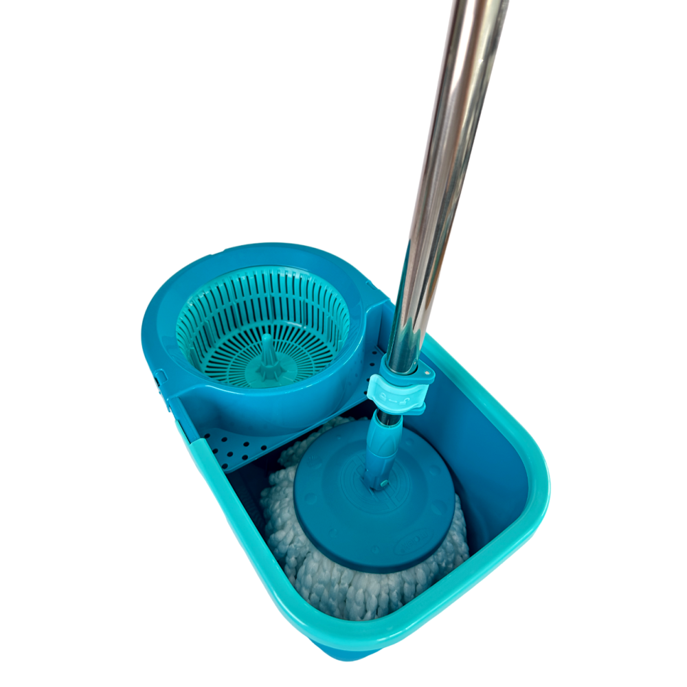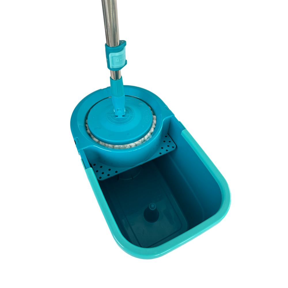 Система високошвидкісного обертання на ручці швабри видаляє майже всю вологу з насадки, що забезпечує комфортне використання завдяки системі, що може рухатись у всіх напрямках.