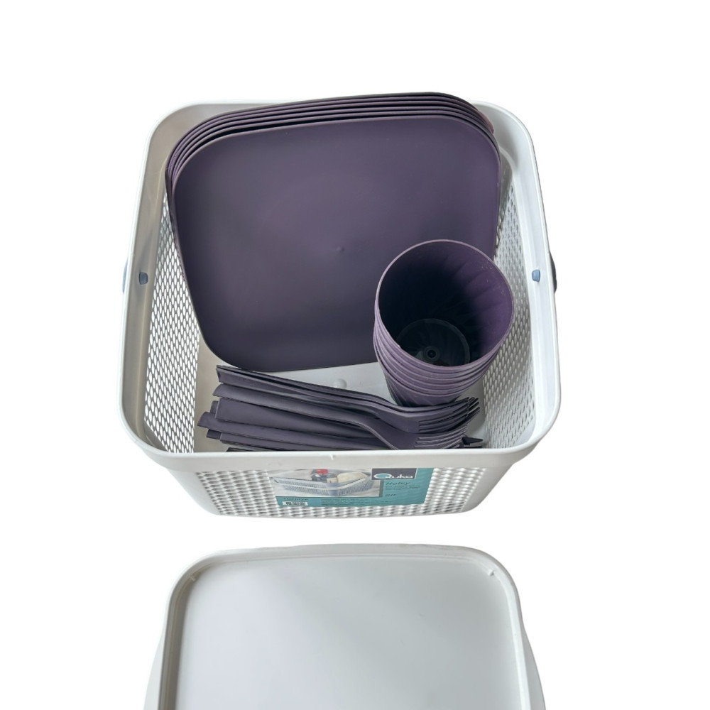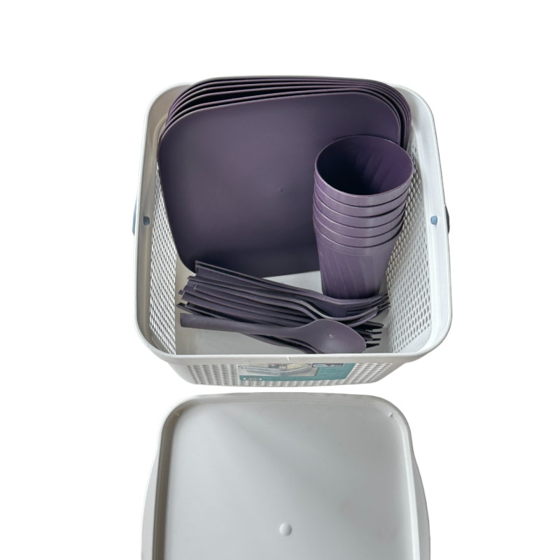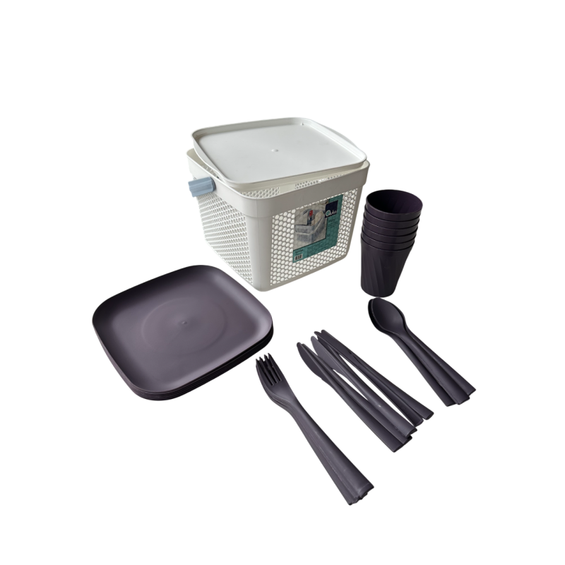 Компактный и удобный набор для пикника от Dempa Plastik – идеальное решение для отдыха на природе, кемпинге, вечеринок или путешествий. Все 32 предмета рассчитаны на 6 человек и удобно хранятся в одной стильной корзине, что значительно облегчает транспортировку и хранение.