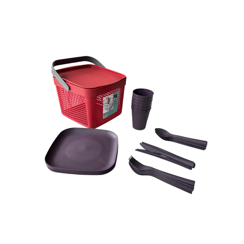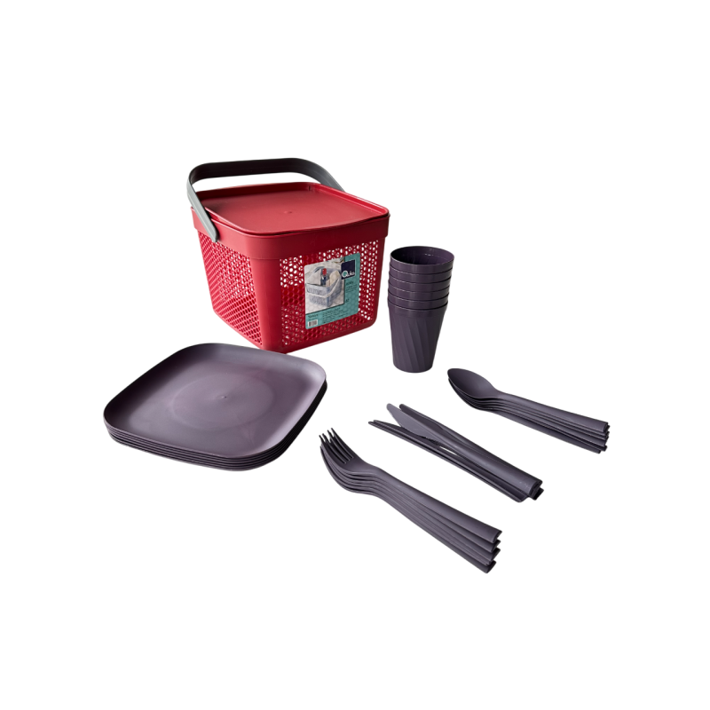 Компактный и удобный набор для пикника от Dempa Plastik – идеальное решение для отдыха на природе, кемпинге, вечеринок или путешествий. Все 32 предмета рассчитаны на 6 человек и удобно хранятся в одной стильной корзине, что значительно облегчает транспортировку и хранение.
