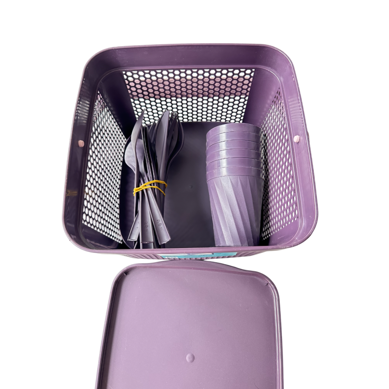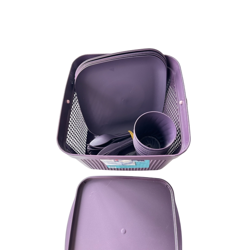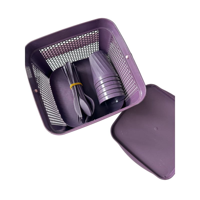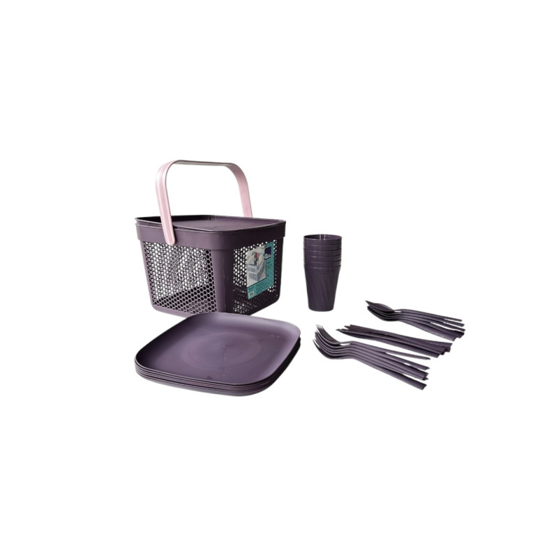 Набор посуды для пикника с корзиной 8л на 6 персон (32 предмета) фиолетовый DP-77