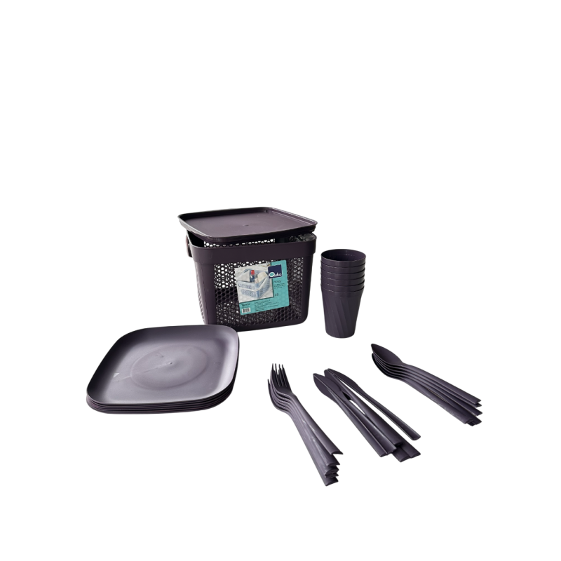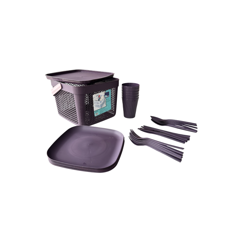 Компактный и удобный набор для пикника от Dempa Plastik – идеальное решение для отдыха на природе, кемпинге, вечеринок или путешествий. Все 32 предмета рассчитаны на 6 человек и удобно хранятся в одной стильной корзине, что значительно облегчает транспортировку и хранение.