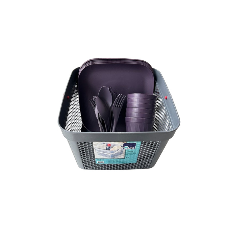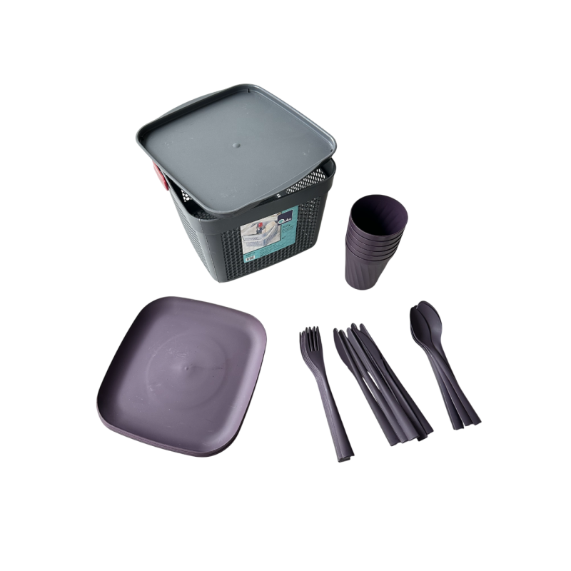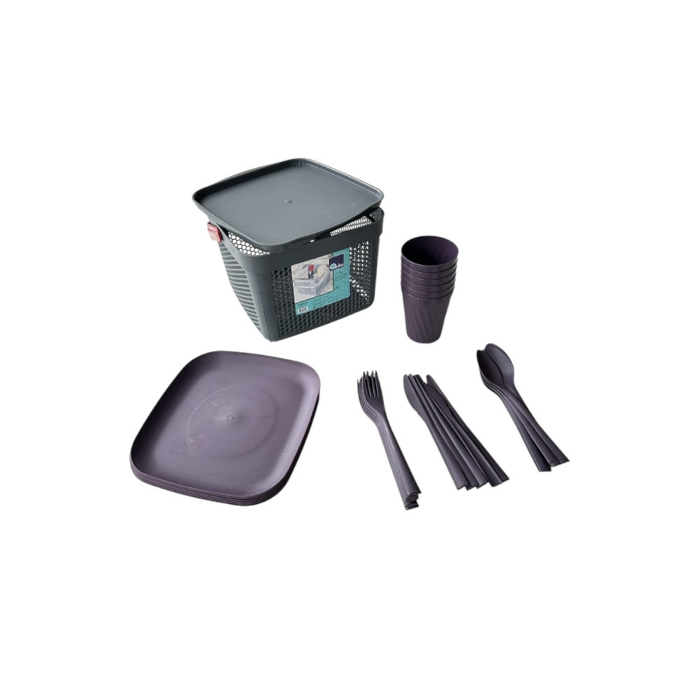 Компактный и удобный набор для пикника от Dempa Plastik – идеальное решение для отдыха на природе, кемпинге, вечеринок или путешествий. Все 32 предмета рассчитаны на 6 человек и удобно хранятся в одной стильной корзине, что значительно облегчает транспортировку и хранение.
