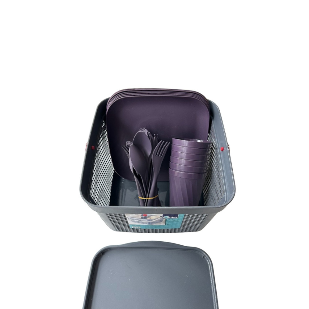 Набор посуды для пикника с корзиной 8л на 6 персон (32 предмета) темно серый DP-77