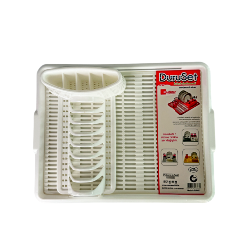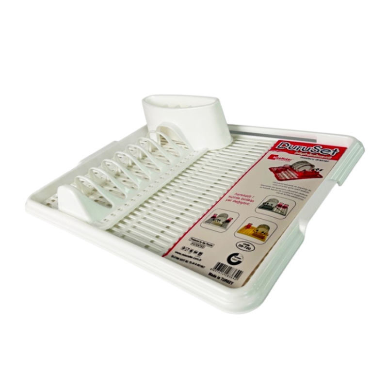 Белая пластиковая сушилка для посуды представляет собой практичное и удобное решение для организации кухонного пространства. Она оснащена отверстиями для стекания воды с посуды в поддон, что предотвращает образование луж и помогает поддерживать чистоту на кухне. После использования рекомендуется вылить воду из поддона, чтобы избежать накопления влаги и неприятного запаха.
