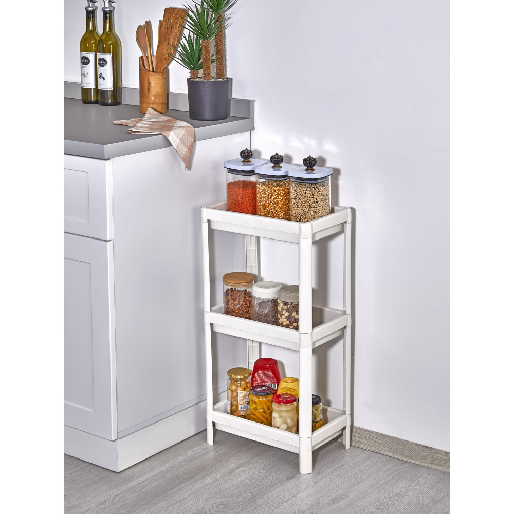 Компактная и стильная пластиковая полочка белого цвета с 3 ярусами – отличное решение для упорядочения вещей в любом помещении. Благодаря прямоугольной форме она органично смотрится как в ванной, так и на кухне, в жилых просторах или офисах.