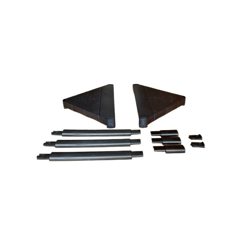 Полочка является сборной: каждый ярус и соединительные элементы поставляются отдельно. Это позволяет быстро и просто собрать ее без инструментов, а при необходимости легко разобрать. Упаковывается в защитную пленку и поставляется в разобранном виде, что обеспечивает компактность транспортировки.