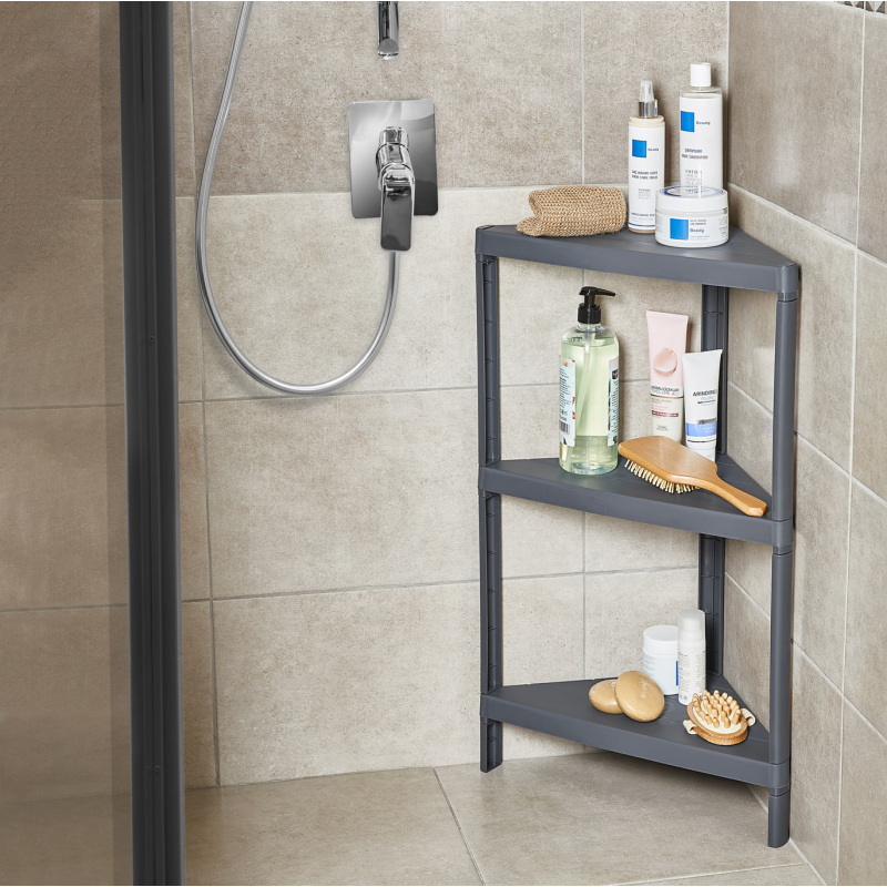 Функциональная угловая полочка из пластика черного цвета с 3 ярусами – идеальный выбор для экономии пространства в кухне, ванной комнате, комнатах или офисах. Благодаря угловой форме она прекрасно подходит для установки в труднодоступных местах, обеспечивая при этом удобное хранение вещей.