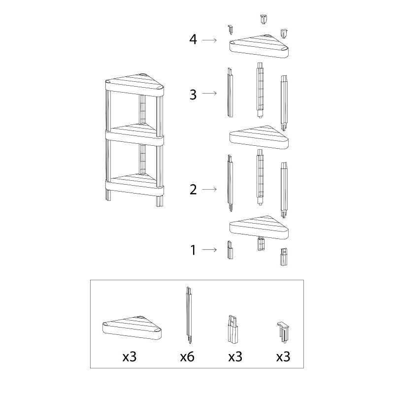 Полочка является сборной: каждый ярус и соединительные элементы поставляются отдельно. Это позволяет быстро и просто собрать ее без инструментов, а при необходимости легко разобрать.
