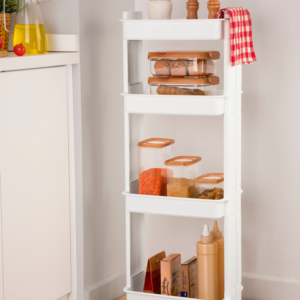 Полка-органайзер четырехъярусная пластиковая, полка этажерка напольная на четыре яруса