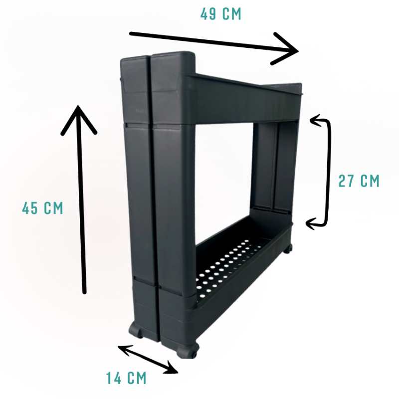 Класна поличка-органайзер! Компактна, але містка, зручна завдяки колесам – легко переміщувати. Використовую на кухні для спецій і дрібниць. Пластик якісний, легко миється, колір стильний.