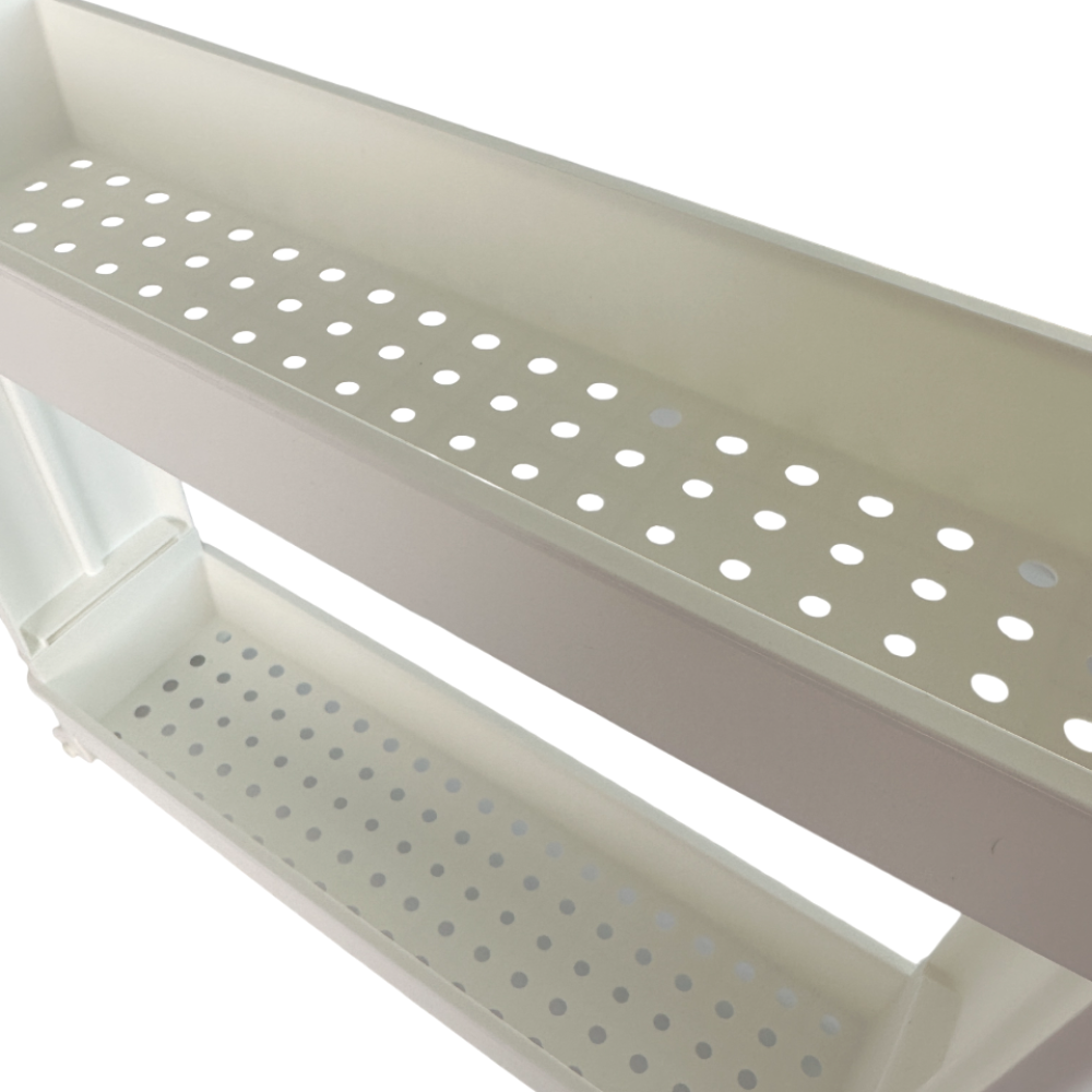 Полочка легко моется, а также ее просто складывать/разлагать. Полочка оснащена колесами, что позволяет свободно перемещать ее саму или вместе с содержимым в нужное место.