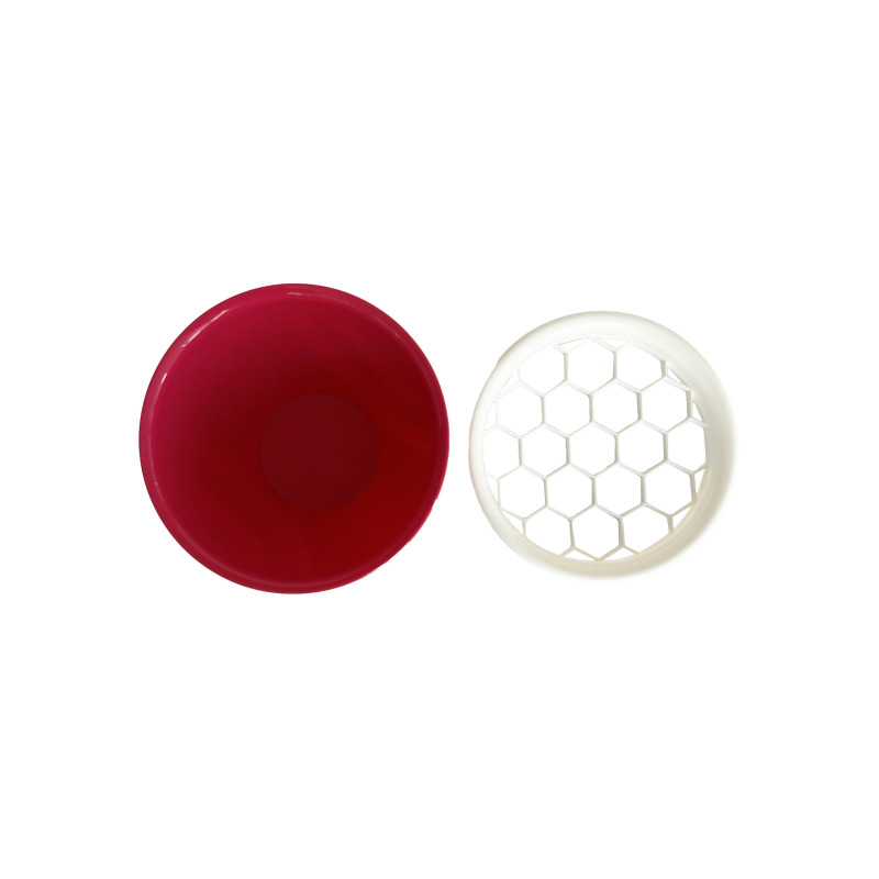 Это приспособление поможет очистить гранат за одну минуту, не беспокоясь о брызгах и пятнах. Контейнер состоит из двух частей: емкости для сбора плодов и крышки с отверстиями в виде сот.