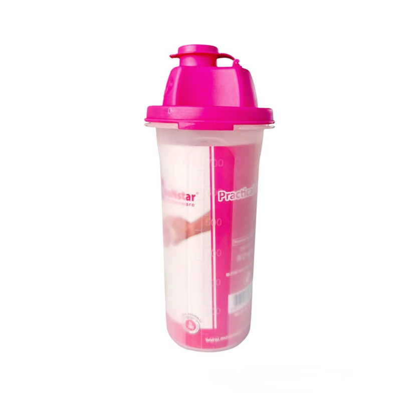Шейкер предназначен для приготовления различных смесей, таких как порошковые добавки, фруктовые йогурты, коктейли и другие продукты. Он имеет мерную шкалу и может выполнять функцию мерного стакана. Объем бутылки составляет 0,7 литра. Она имеет прозрачное корпусное исполнение и розовую крышку.