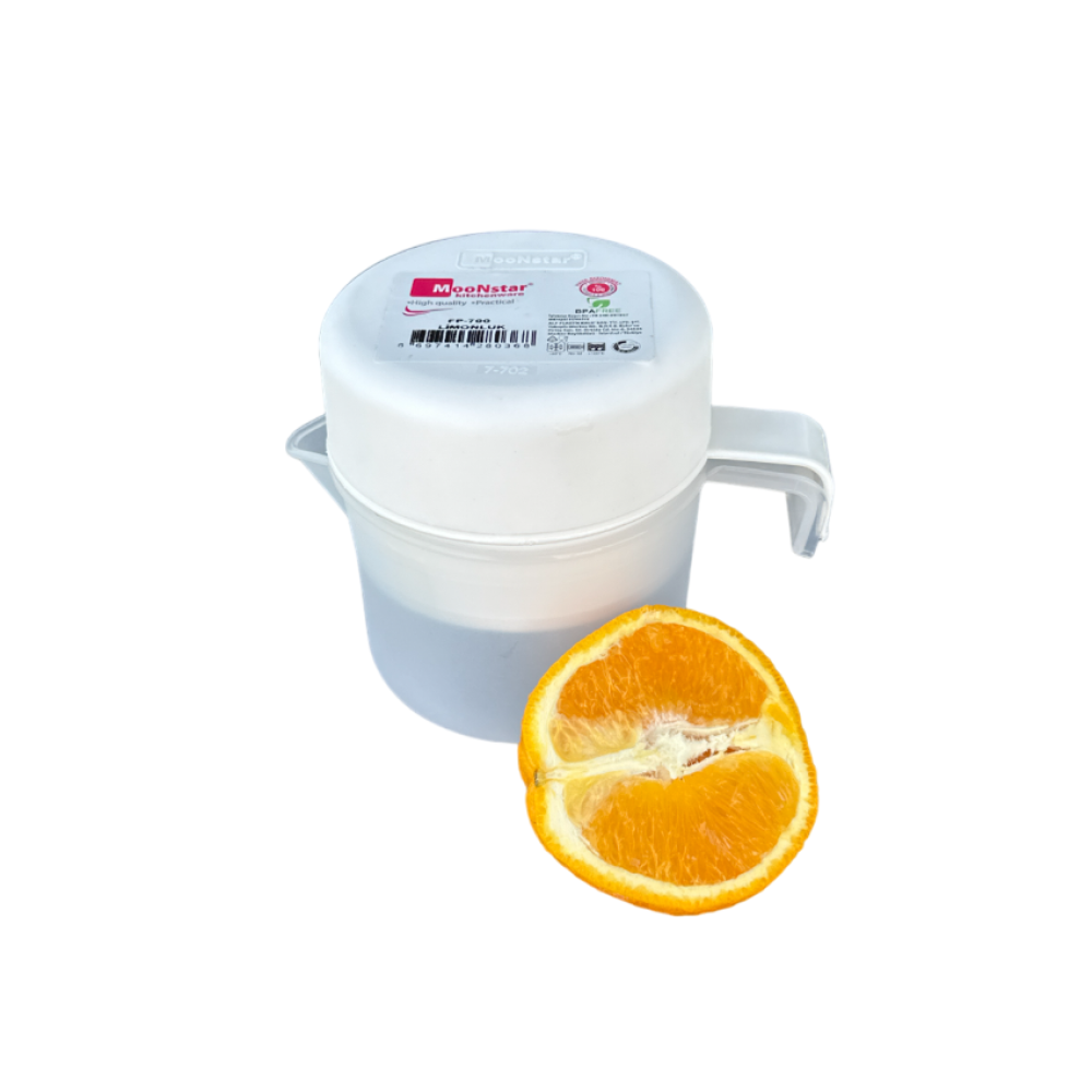 Подходит для мойки в посудомоечной машине. На контейнере есть носик для более удобного переливания фреша в стакан.