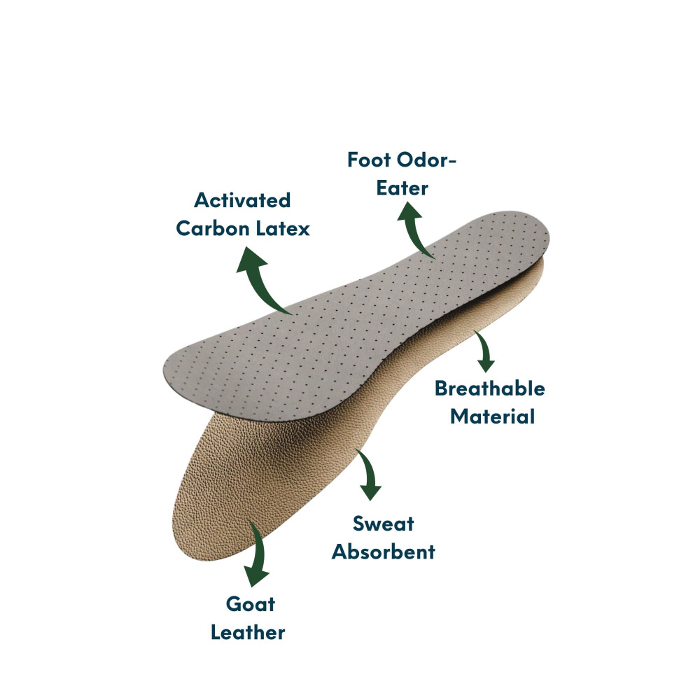 - 100% козья кожа растительного дубления на верхней поверхности предотвращает образование неприятного запаха на ногах и препятствует размножению бактерий. Использованный экстракт каштана сохраняют здоровье ног и поддерживают их чистоту.