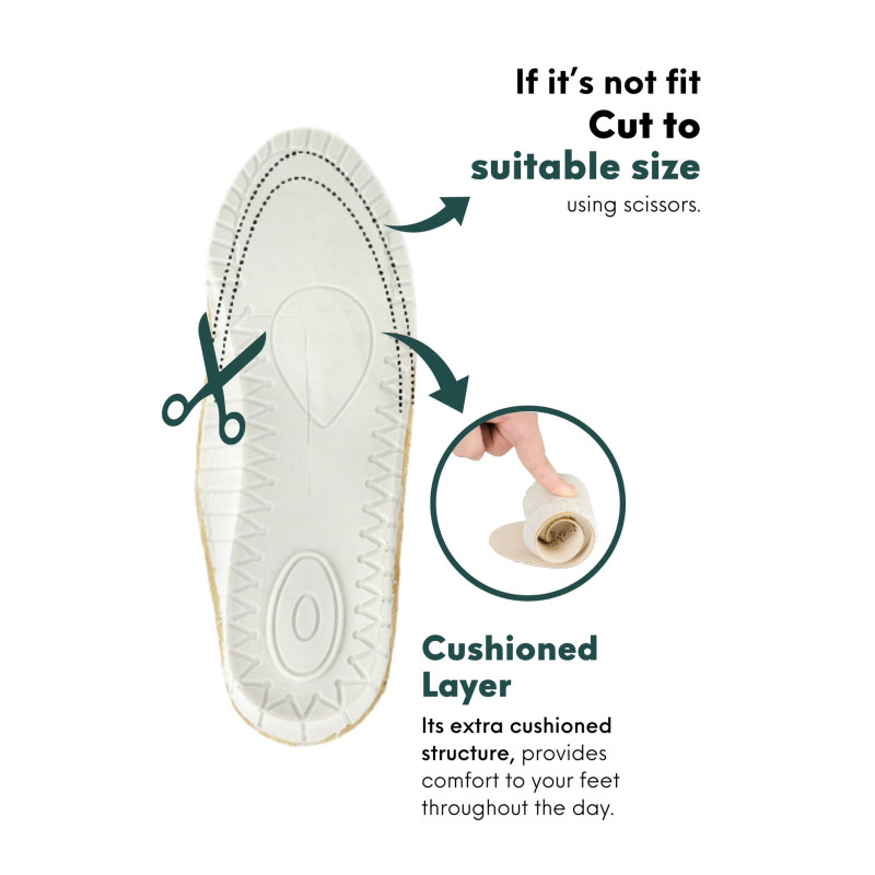 Мягкий слой на нижней поверхности обеспечивает ортопедический комфорт, поглощая пот, сохраняя ноги в комфорте. Это уменьшает усталость, гарантируя, что ваши ноги находятся в правильном положении во время каждого шага.
