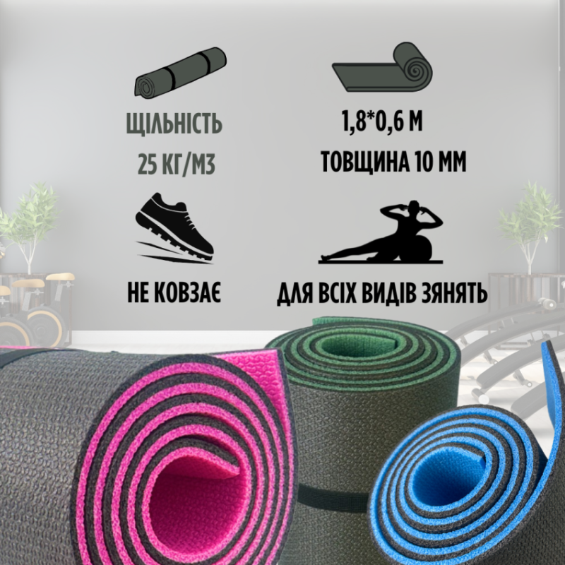 Товщина: 10 мм — що гарантує хорошу ізоляцію від холодної поверхні та комфорт під час лежання/сидіння.
