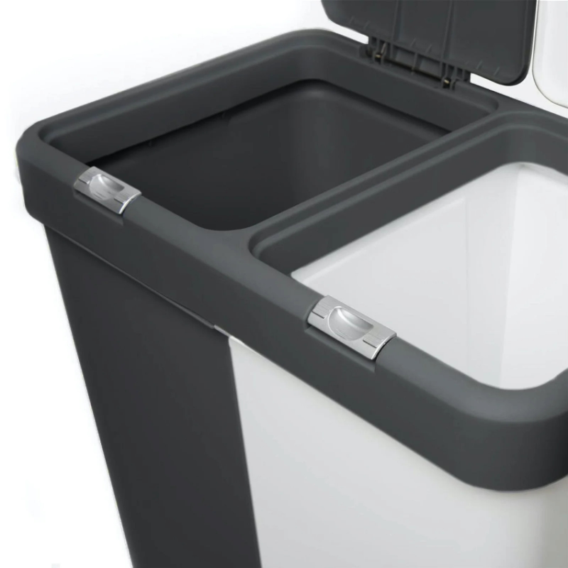 Два відділення по 40 літрів кожне: Корзина розділена на два відділення, що дозволяє зручно сортувати білизну. Ви можете розділити білизну на чорну та білу, або на кольорову та чорно-білу.